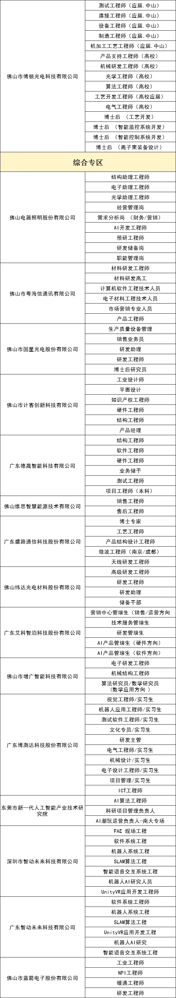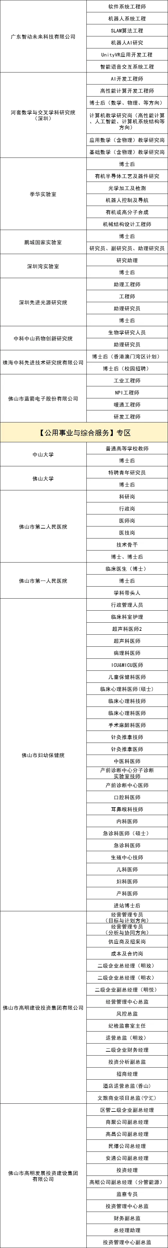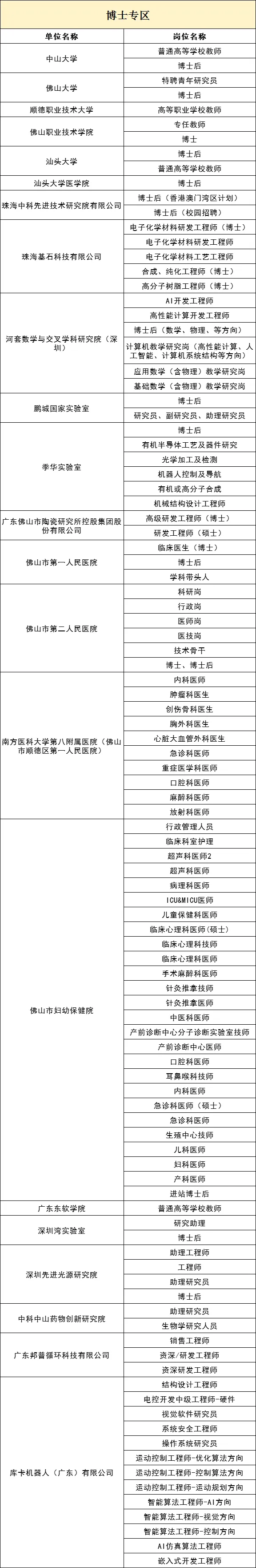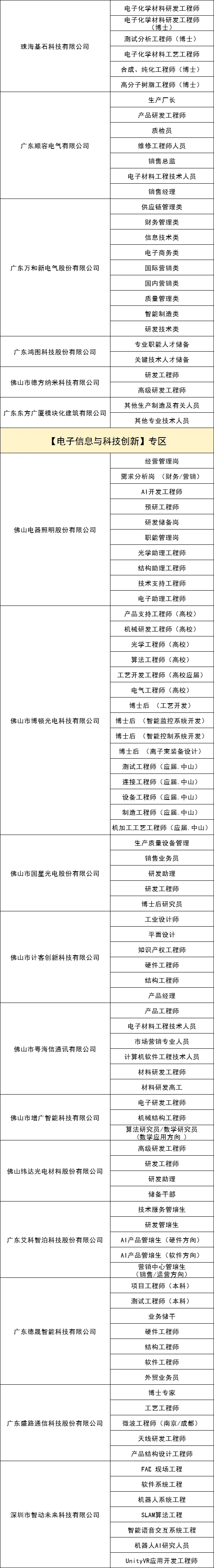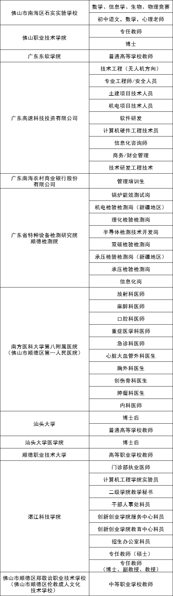 岗位募集紧扣智能家电、半导体及集成电路、先进材料、高端装备制造、精密仪器设备、新一代电子信息等战略性新兴产业集群,重点发动产业链头部企业及高能级科研平台参会。其中,重点用人单位包括:中山大学、佛山大学、顺职大、季华实验室、库卡机器人、邦普循环、国星光电、科达制造等。