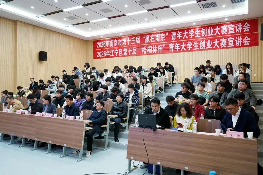 同期,现场还举办了政策宣讲与区域推介会。江宁区人社局局长董红霞化身“城市推荐官”,从人文底蕴、生态宜居、交通便捷、配套完善、产业雄厚五个维度,生动描绘了江宁的魅力画卷。副局长张晓龙重点推介了《青年人才聚江宁三年行动计划(2026—2028年)》的“五好二十有”政策大礼包,展现了江宁宜居宜业、赋能成长的良好人才生态。南京市劳动就业服务管理中心及江宁区人社局相关负责人还详细解读了市、区两级的青年就业创业政策,并推介“赢在南京”“梧桐林杯”青年大学生创业大赛,为有志创业的学子提供清晰路径与有力支撑。