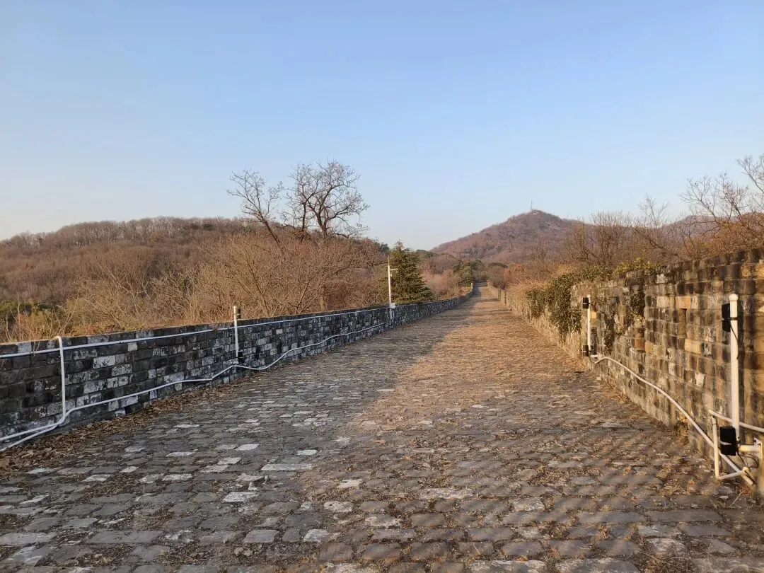 很多人会疑惑,这里是不是龙脖子?答案是肯定的——你视线所及的这段城墙,正是龙脖子段的核心区域。古人视钟山为“蟠龙”,龙脖子段便是沿钟山南麓蜿蜒的关键城墙段落,整体西起太平门,东至富贵山,呈东西走向贯穿钟山脚下,而富贵山段并非独立存在,而是龙脖子段的有机组成部分,且是最具特色的一段。二者一脉相承、无缝衔接,龙脖子段整体墙体多为平直走势,贴合地势平缓区域,而富贵山段因直接依托富贵山山体筑造,走势随山体起伏错落,更凭借“山藏城墙、内嵌防御”的独特构造,区别于龙脖子段其他段落,成为龙脖子段的“点睛之笔”。二者相依相伴,一边是龙脖子段的舒展绵长,一边是富贵山段的错落深邃,共同勾勒出南京“山水城林”的独特轮廓,且作为南京城墙中唯一没有护城河的段落,这份地理与构造的双重独特,更让这段承载抗战记忆的城墙,多了几分独有的辨识度与厚重感。