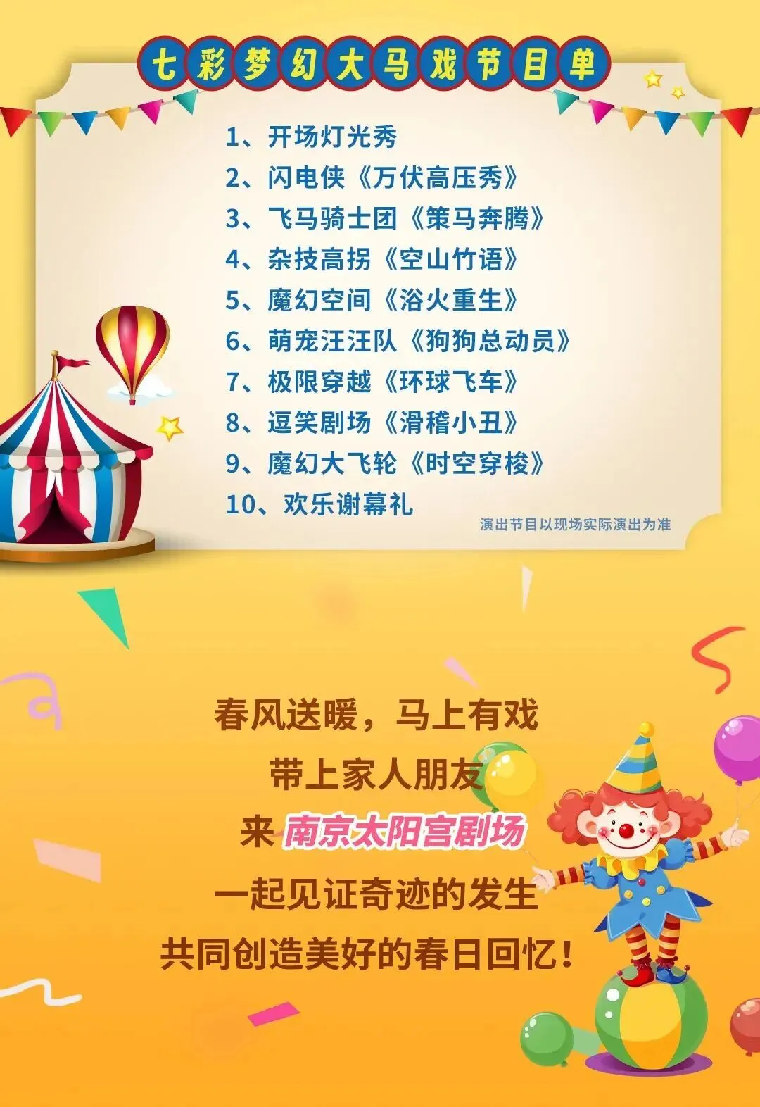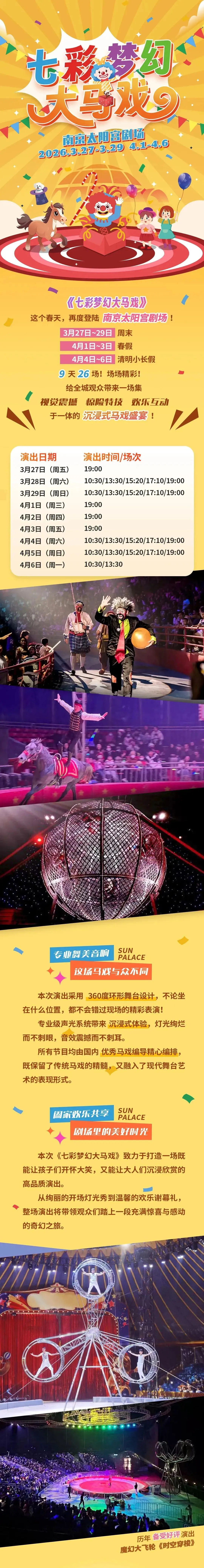 7.温馨提示:七彩梦幻大马戏因剧情需要,个别节目较为奇幻惊险,老人、孕妇、婴幼儿、患有心脏病、高血压及胆小儿童等观众不宜观看紧张刺激演出的,请谨慎选择;