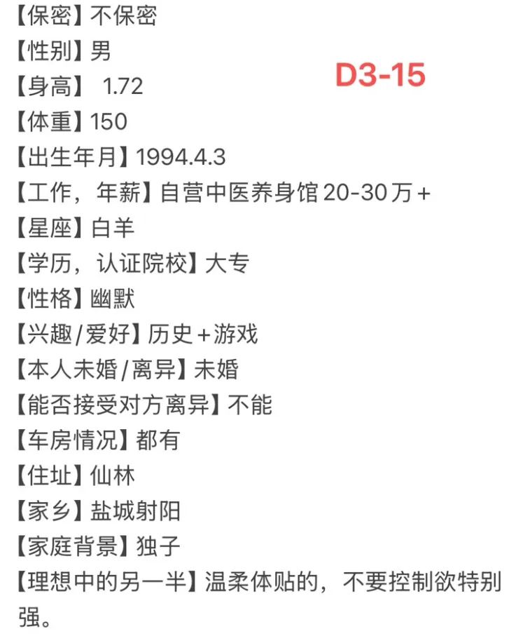 南京月老丨94年,男,身高172,专科学历,自营中医养生馆,有房有车
