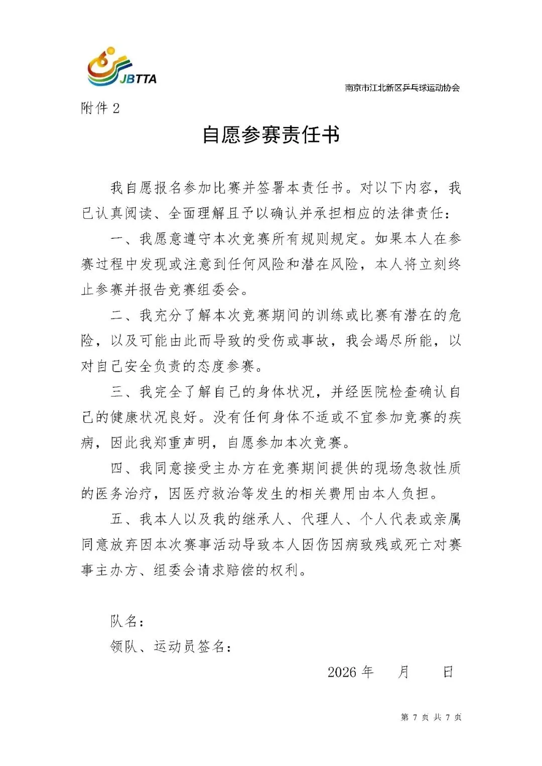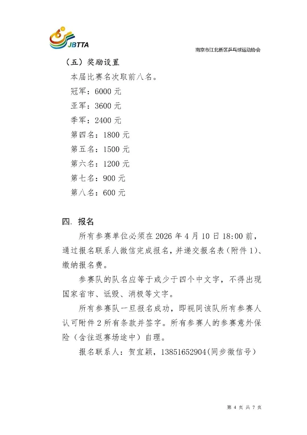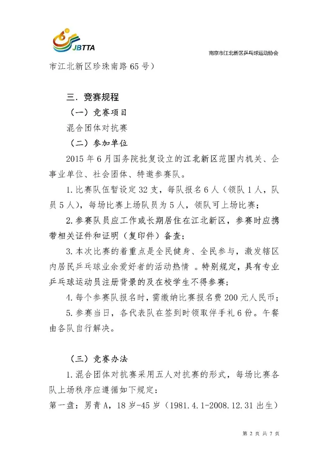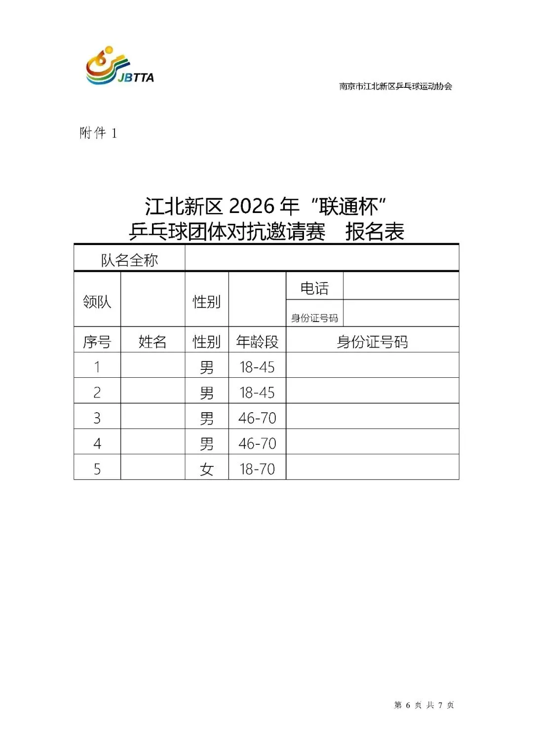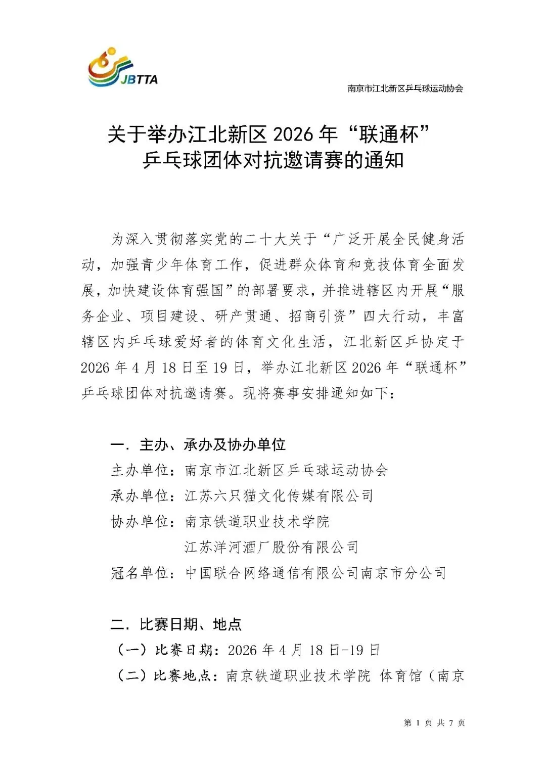 >关于举办南京江北新区2026年“联通杯”乒乓球团体对抗邀请赛的通知