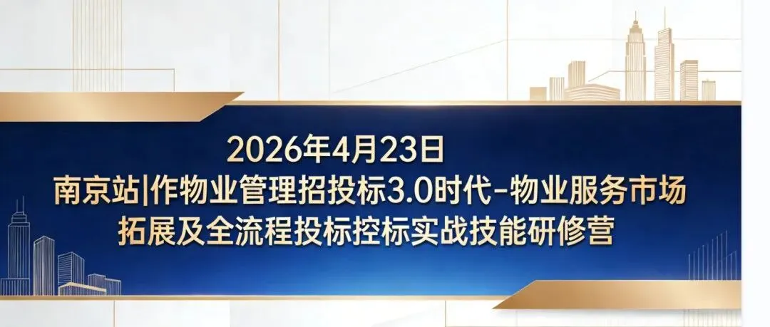 为助力物业服务企业明晰物业管理招投标的底层逻辑,掌握物业管理招投标的顶层思维,构建物业企业AI智能投标管理体系,提升企业投标核心竞争力,鲁斯尔咨询特邀行业资深招投标实战专家贾建军老师于2026年04月23日于南京举行《物业管理招投标 3.0时代物业市场拓展及全流程投标控标实战技能培训》专题课程。作为亲身参与百余场物业招投标项目的资深专家,贾建军老师凭借深厚的理论基础与丰富的一线实操经验,将复杂的招投标流程拆解为可复制的实战技巧,内容涵盖标书编制、风险规避、评审要点以及谈判博弈等,覆盖物业招投标全流程的核心难点。十余年沉淀,只为呈现最具实用性的干货内容:摒弃空洞理论,聚焦实际操盘痛点,运用真实案例剖析成功逻辑,助你迅速掌握标书高分技巧、规避常见陷阱,提高投标中标率!具体安排如下: