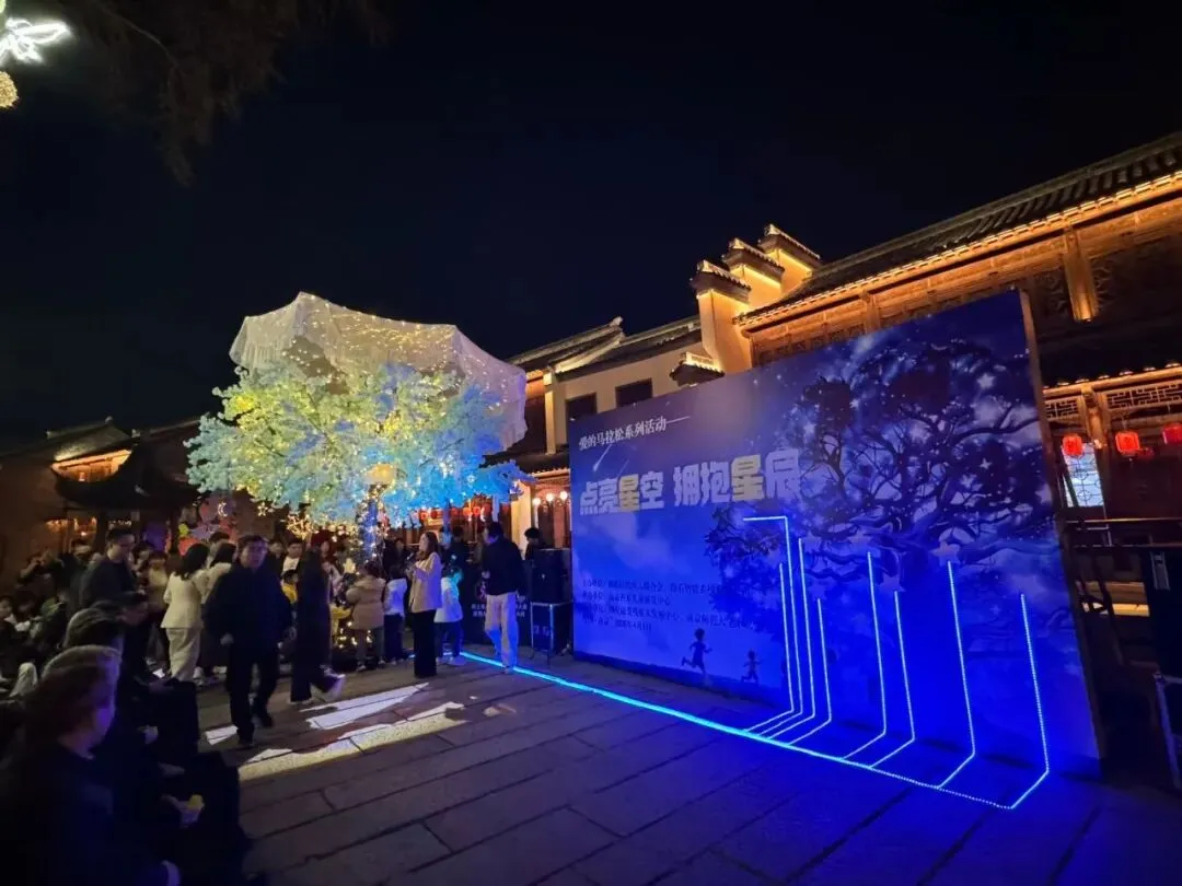 在活动的核心环节“爱的马拉松・星空点亮仪式”中,公益组织代表与孤独症儿童代表共同触摸星空启动柱,刹那间,全场星空装置璀璨点亮,星光小径流光溢彩,星愿挂饰闪烁摇曳,寓意着全社会汇聚微光、照亮“星星的孩子”前行之路。