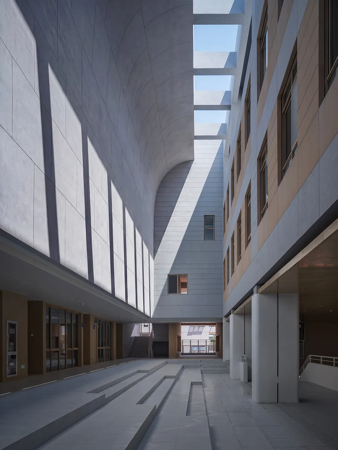 阳光,是建筑最珍贵的灵魂,也是孩子成长不可或缺的底色。学校在设计中精心打磨每一处光线处理方式,让阳光自然洒进校园的各个角落,照亮课堂,温暖操场,浸润每一个孩子的成长瞬间。不同的光影变化,让空间拥有了不同的情绪与体验,也让孩子的校园生活,多了一份自然的诗意。