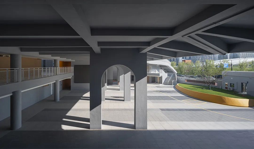 校园本就是孩子接触社会的第一站,单一的空间体验是对孩子探索欲的辜负。功能叠加的设计,不仅大幅提升了空间使用效率,更让孩子在校园里就能体验丰富多元的场景:学习、游戏、交流、探索…… 不同功能空间的交织,让校园成为一个微型小社会,让孩子在多样的体验中,感知世界的丰富。