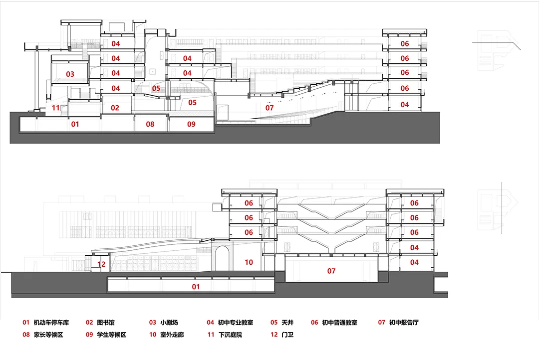 △ 初中剖面图 ©荣朝晖工作室+东南大学建筑学院+南京邦建