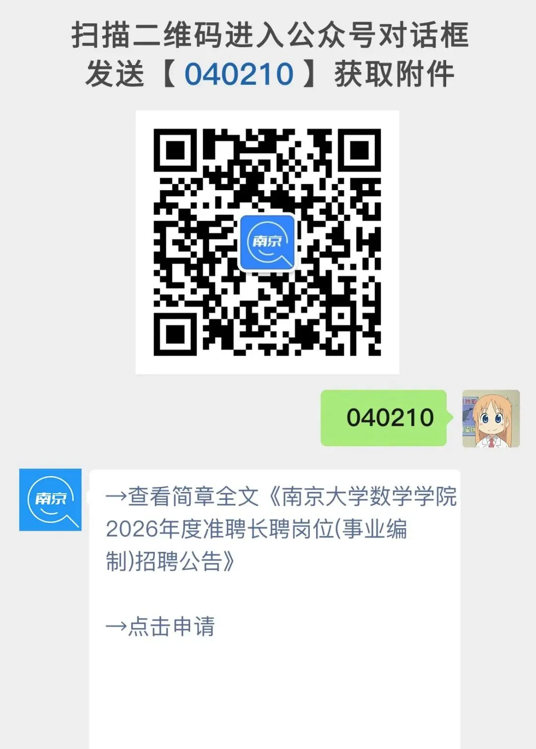 请点击左侧【点击申请】或登录南京大学人才招聘网(http://zp.nju.edu.cn/)注册报名。
