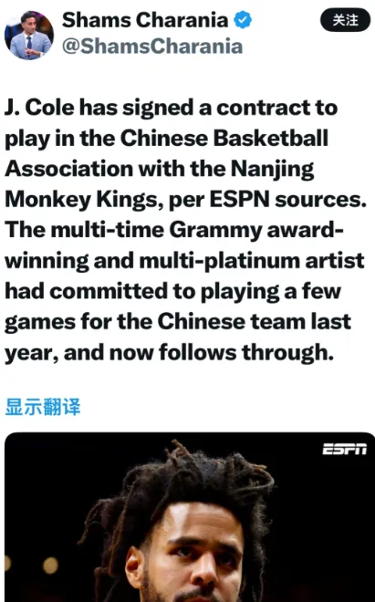 早在几天前,就有消息传出著名说唱歌手J. Cole已经和南京同盟队签约,要征战CBA了...
