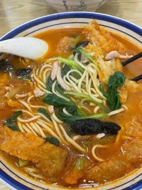 第二天早上在鼓楼附近吃了碗皮肚面。面端上来,满满一大碗,皮肚、猪肝、香肠、青菜堆得冒尖。老板娘看我愣着,笑了一句:”我们南京人实在,吃饱再走。”