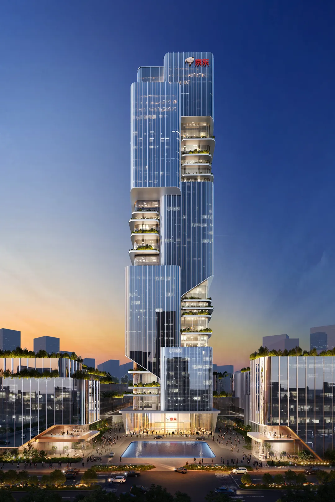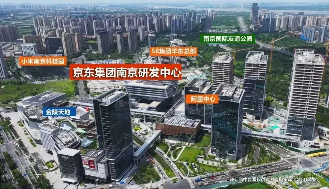 位置:南京市建邺区河西中央科创区核心地段,元前路以南、水灵街以西,紧邻阿里巴巴江苏总部、小米南京科技园等科技巨头总部。规模:总建筑面积约27.4万平方米,主塔楼高200米。功能包括办公(约15.65万㎡)、研发部及展示厅(约2.76万㎡)等。定位:集区域总部办公与前沿科技研发于一体,成为京东集团在华东地区的战略引擎,助力南京数字经济和“人工智能+”产业高质量发展。