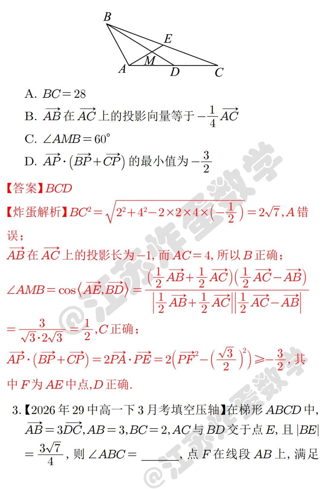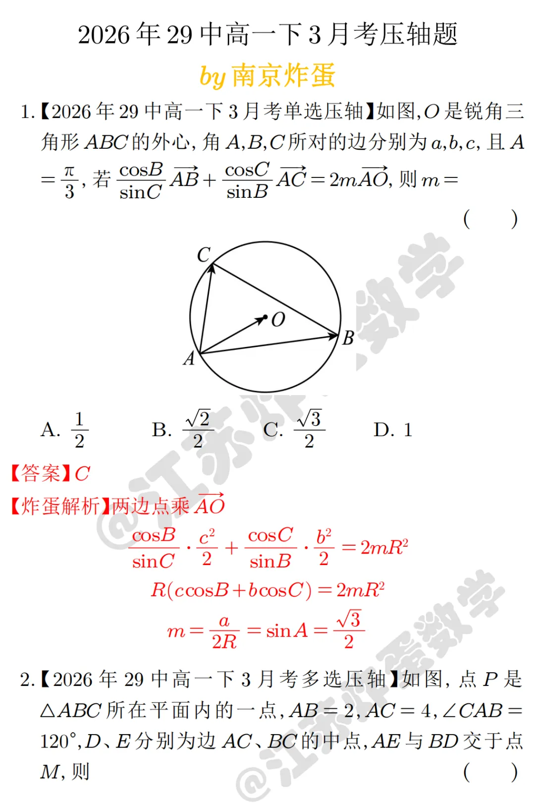 虽然29中进度很快,不过这张月考卷还是以向量+恒等变换为主,解三角形比较少,马上的期中肯定重点压轴在解三角形上,后续有兴趣提升自己解三角形压轴的,可以联系我报名后面的几讲。