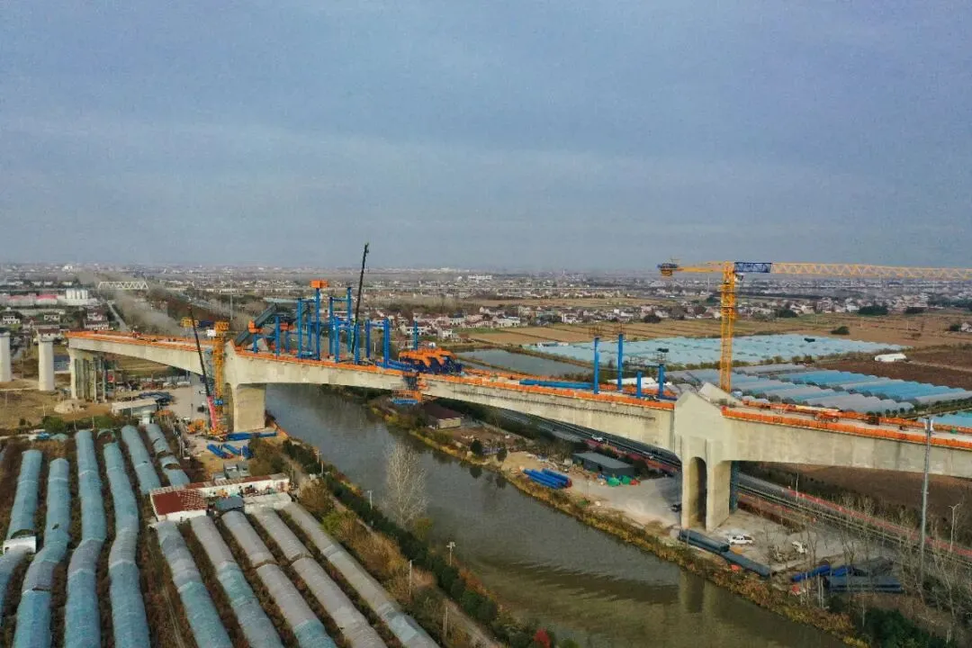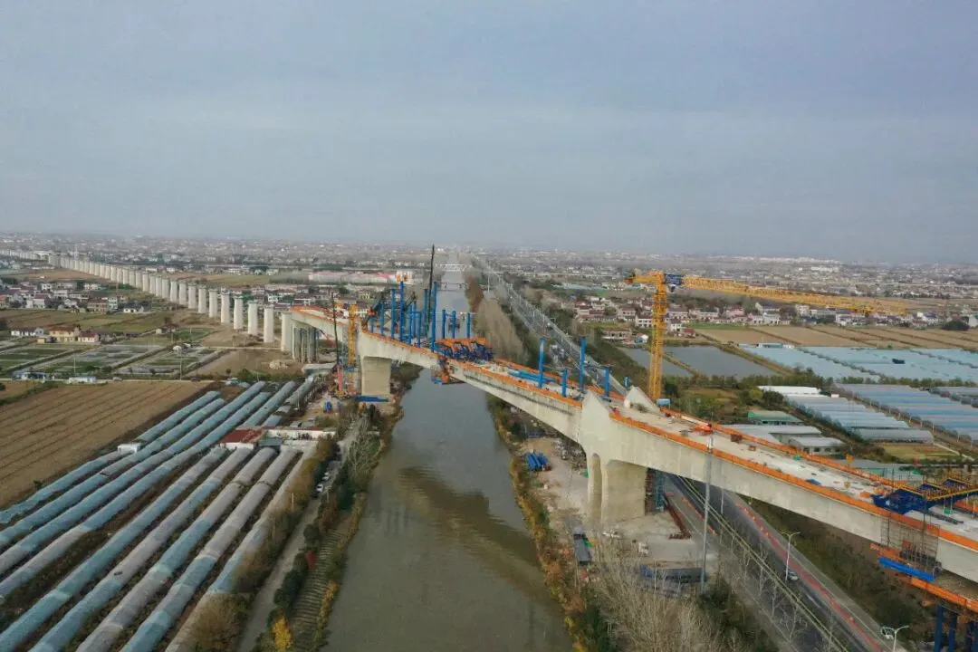 中国铁路上海局集团有限公司介绍,12月9日,上海至南京至合肥高铁通泰扬特大桥跨X355县道及如泰运河连续梁顺利合龙,标志着项目建设取得突破性进展,该连续梁是上海至南京至合肥高铁泰州段跨度最大的连续梁。