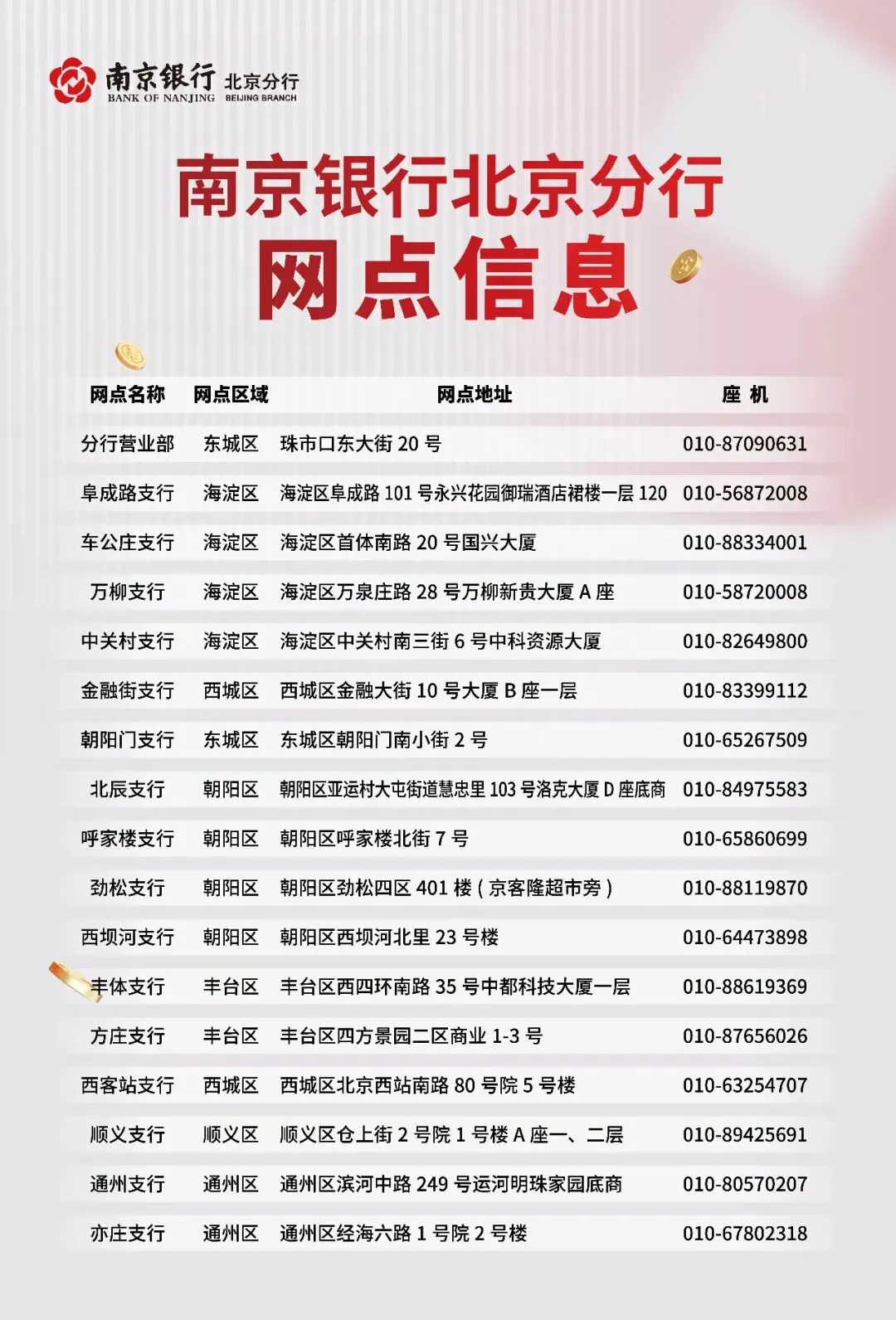 >南京银行北京分行清明节期间各网点营业时间安排