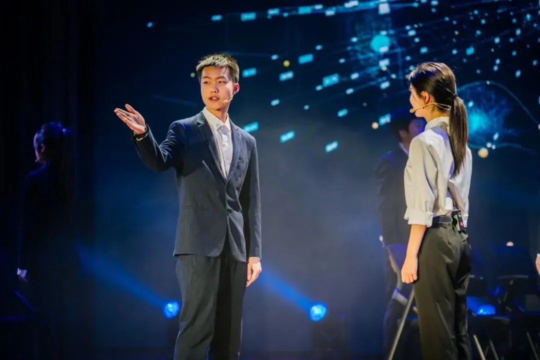 音诗画《邮青春 邮梦想》话剧《奔跑者》书写通信人科技报国的奋斗历程,诉说南邮人逐梦通信的初心使命;龙狮舞《龙腾华夏》气势磅礴,舞出青年与祖国同频共振的信念与担当。整场展演以美润心、以情育人,传承红色血脉,彰显南邮学子青春担当与报国之志,为培育时代新人注入澎湃美育力量。