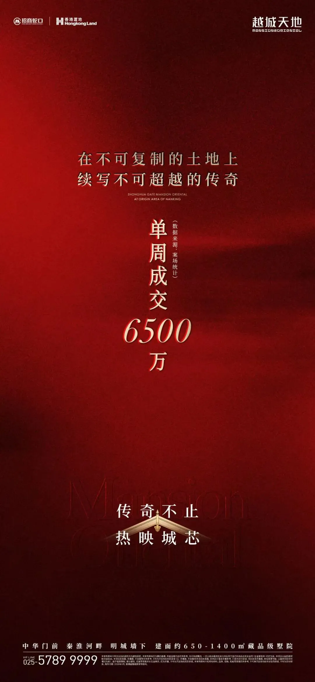 中华门前·秦淮河畔·明城墙下的越城天地·传世墅院项目,单周热销6500万。