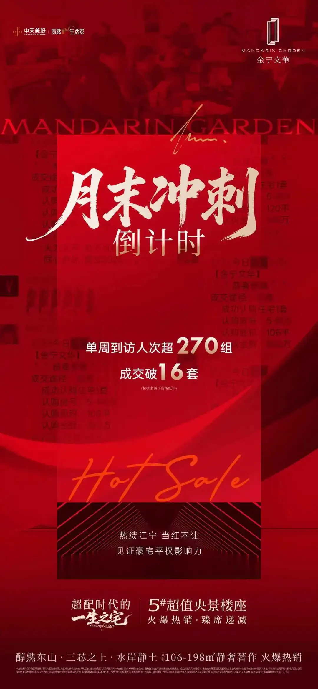 江宁东山中天·金宁文华3月最后一周,单周到访人次超270组,成交破16套。