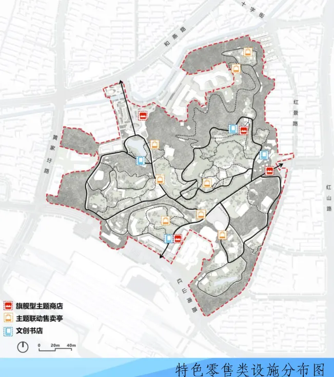 特色零售类设施:旗舰型主题商店设置在园区主入口区,游客入/离园:的高频购买区;主题联动售卖店设置:在明星动物展区附近;文创书店设置在教育区/科普馆出口,以科普衍生品、图书为主。
