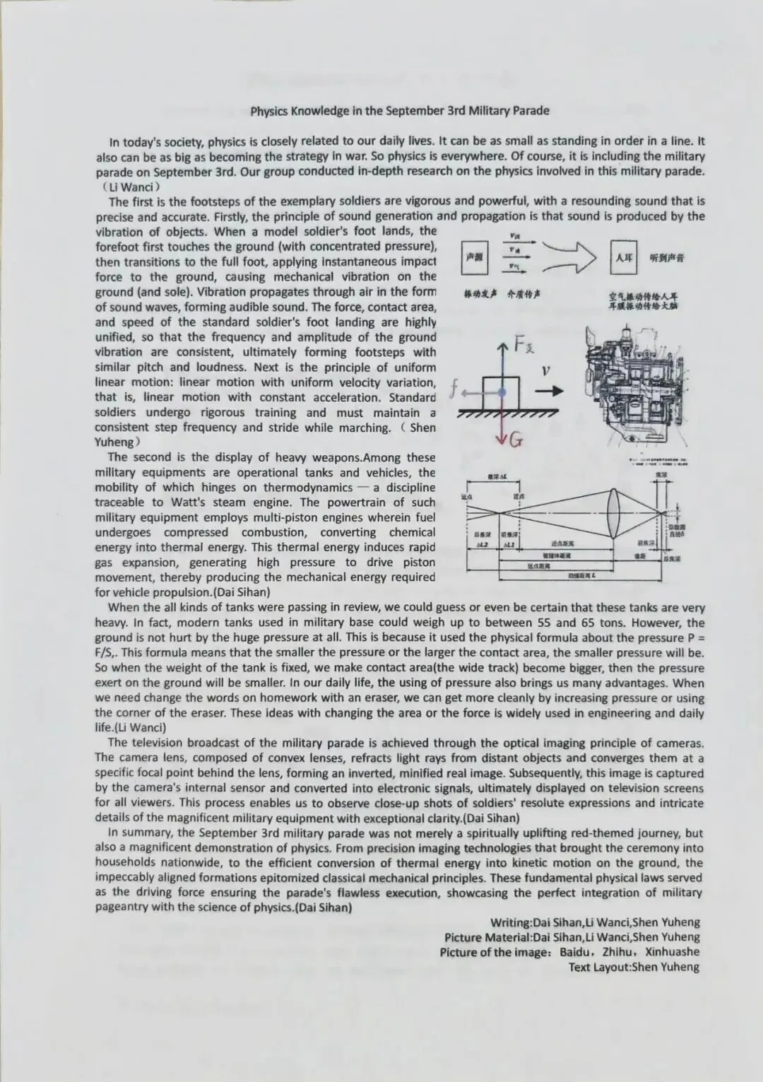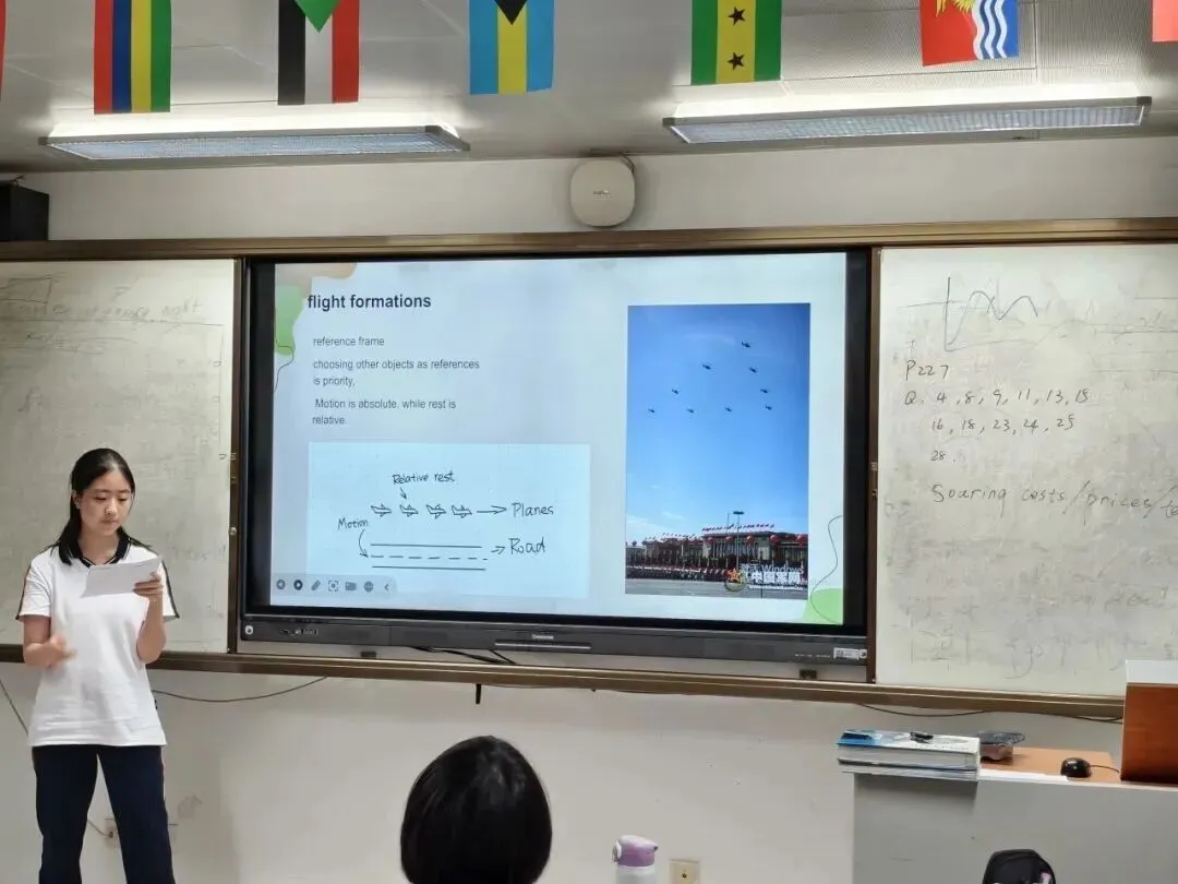 在日常教学中,南京河西外国语学校国际部国际高中课程实验班注重物理教学的创新实践。物理教师经常组织趣味实验,例如去年阅兵式后,韩老师结合国家盛事与学科知识,布置了一项别具特色的物理作业——以“93阅兵中的物理知识”为主题,引导学生用英语撰写分析文章。通过此类教学方式,学生逐渐认识到物理学习不仅依赖公式记忆,更重在原理理解和实验分析,而课堂上的动手实践正是对考点的生动拆解。