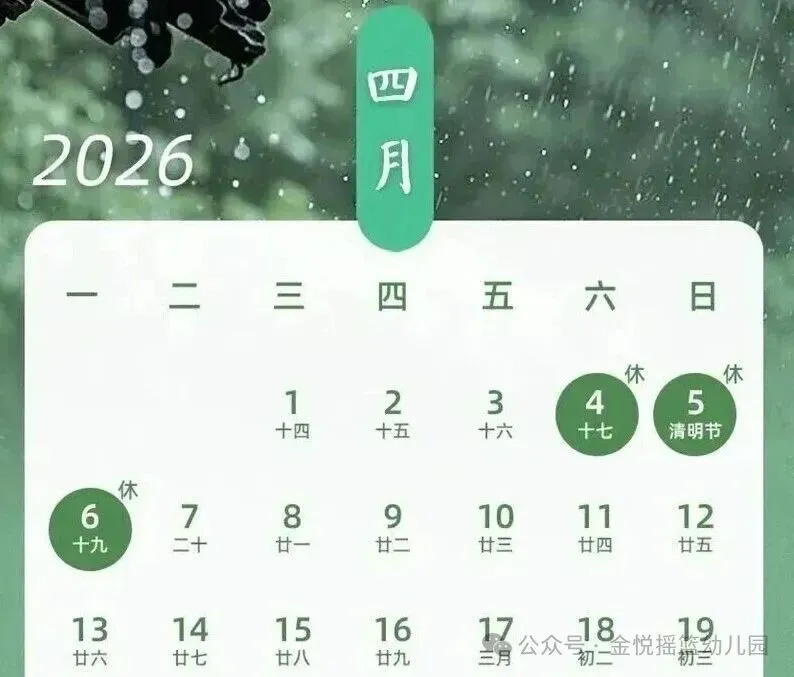 春和景明,草木萌发,又至一年清明时。为了让孩子度过一个充实、平安的假期,根据国务院办公厅放假通知,南京武家嘴幼儿园(老园)2026年清明节假期安排如下:敬请家长配合做好孩子的监护、教育工作。