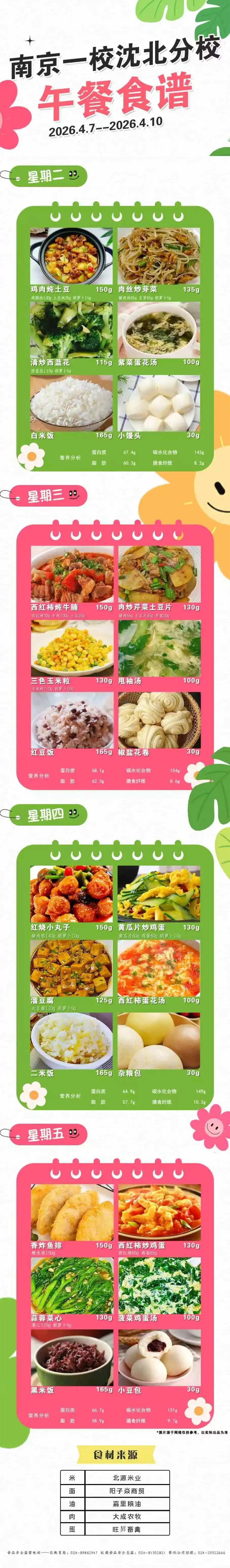 >【美好“食”光】南京一校沈北分校4.7-4.10食谱