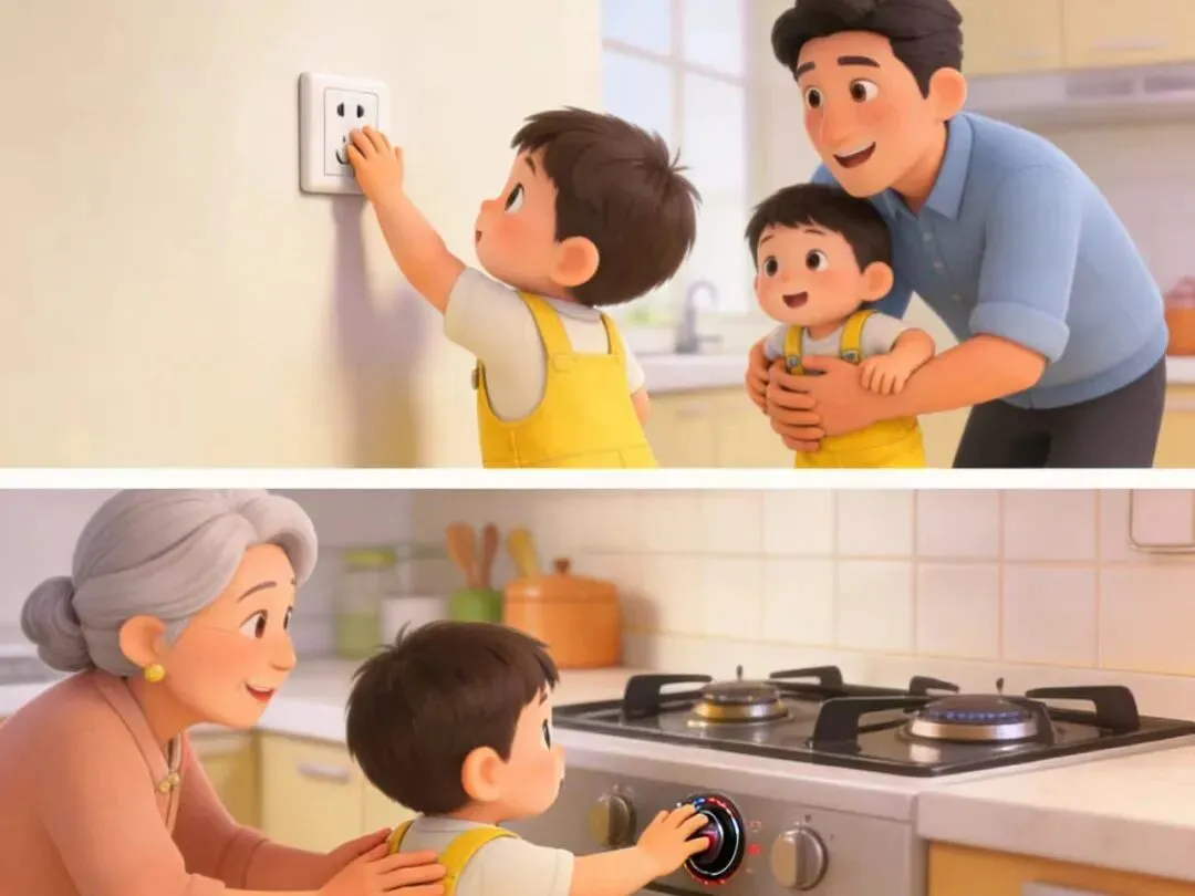 1. 不让孩子独自在家,教育孩子不攀爬阳台、窗户,不触摸插座、电器、燃气。