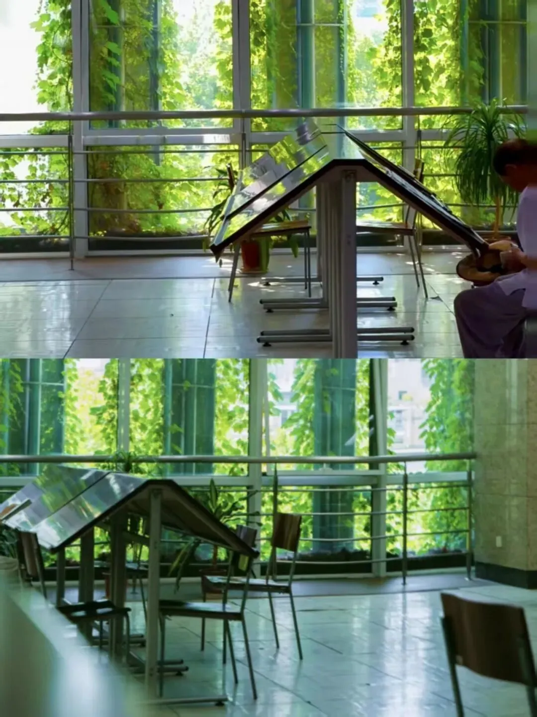 南京图书馆 阳光透过玻璃穹顶洒下来,绿植爬上书架,安静又治愈。✨ 小贴士:工作日上午去,光影最美,人也少~