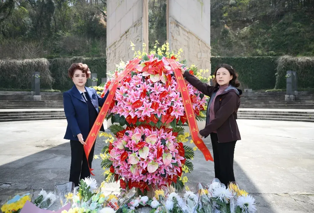 随后,大家来到航空烈士公墓区,举行庄重肃穆的凭吊仪式。在巍然矗立的纪念碑前,大家整齐列队、肃立默哀,向为民族解放事业英勇献身的中外航空英烈敬献鲜花、三鞠躬,深切缅怀革命先烈的丰功伟绩,表达无限敬仰与深切哀思。英烈碑上的名字熠熠生辉,见证着血与火的抗战岁月,更激励着新时代巾帼奋进担当。