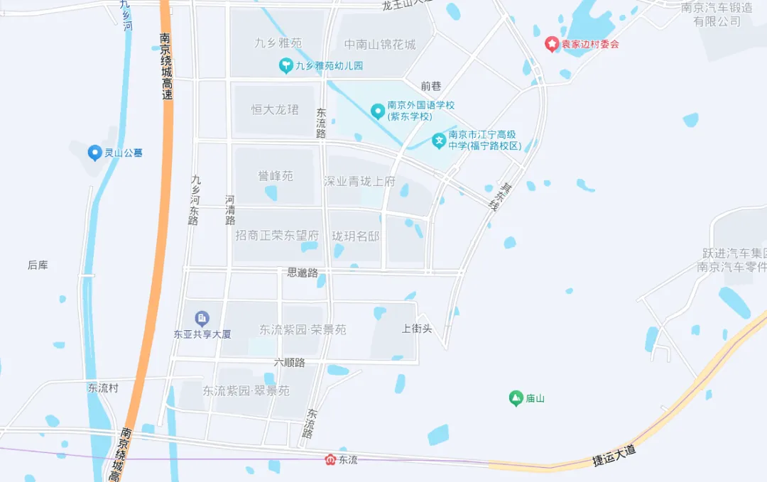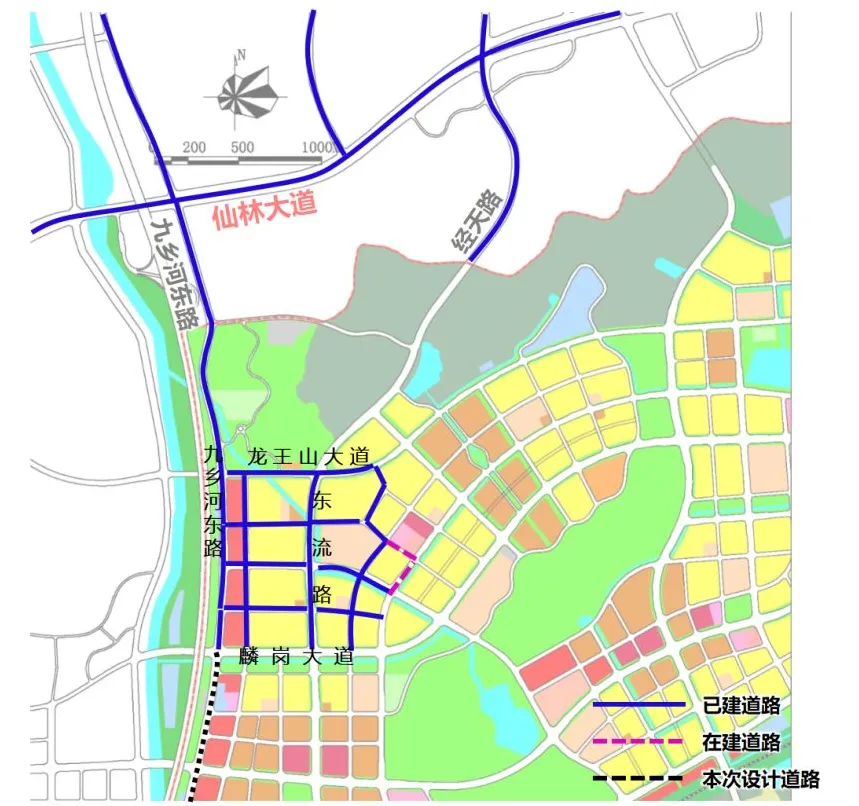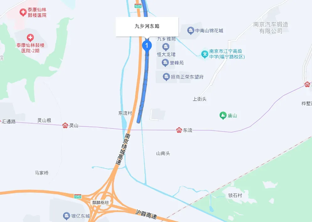 作为紫东核心区"四纵五横"路网的纵向主干道,九乡河东路西接灵山北路,东连城市三环。道路南延工程建成后可实现青龙地铁小镇与仙林大学城的直连。