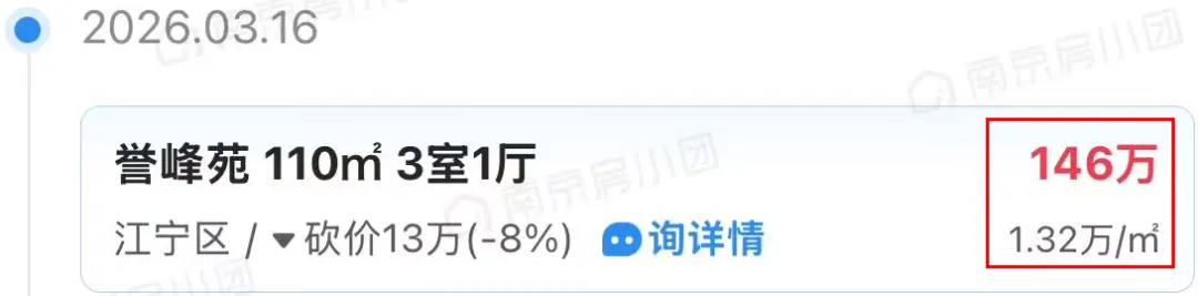 3月16日,誉峰苑成交一套建面约110㎡房源,成交总价146万,成交单价为1.32万/㎡。