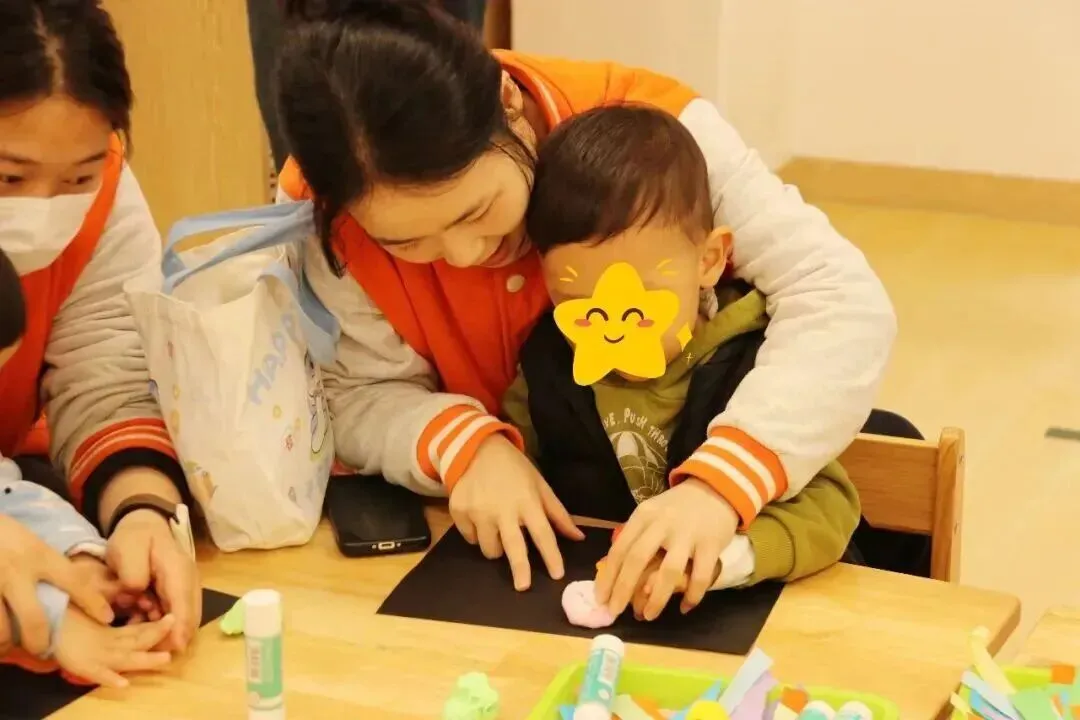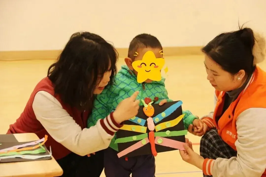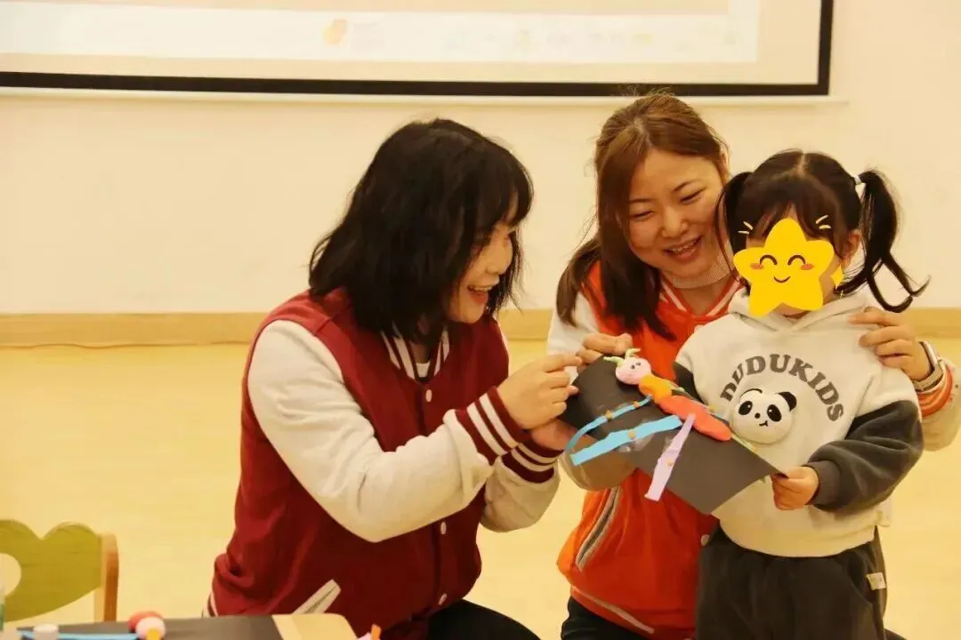 律动过后,创意手工环节如约而至。老师们带领着小朋友们一同制作美丽的蝴蝶,小小的指尖捏着彩纸、粘着重叠的翅膀,孩子们的专注力在创作中慢慢提升,动手能力也在一次次尝试中得到锻炼。家长们俯身陪伴,耐心引导,在共同完成手工的过程中,亲子间的情感悄然升温。孩子们围坐在一起,偶尔互相分享彩纸、交流想法,在轻松的氛围里体验着集体协作的乐趣,也为后续的家长沙龙营造了温馨又融洽的氛围。