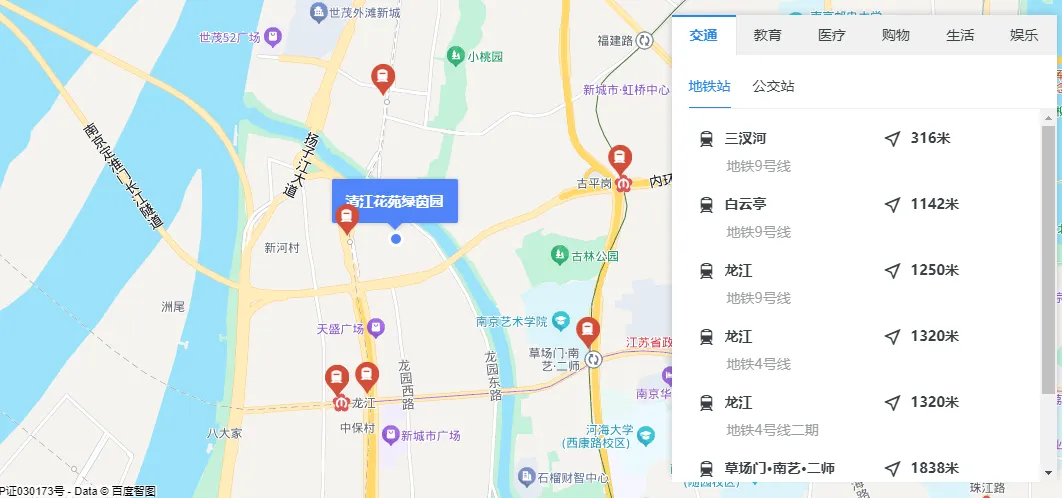 交通方面:小区距地铁9号线三汊河站约300米,到4号线龙江站约1.2公里,公共交通比较方便