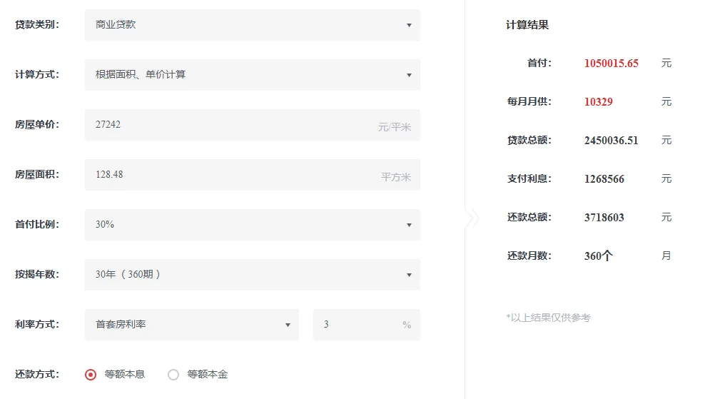 房主报价350万,按照首付3成约105万元,剩下商贷,按照3%的利率,月供约10329元,用公积金贷款月供可以少些