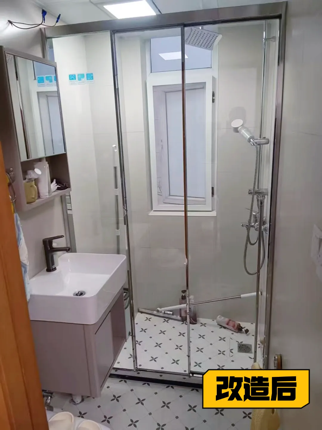 这位清溪村的客户找到我们,沟通下来得知,客户一开始就不满意房子的装修,卫生间也没有淋浴房,还是老式立柱的浴室柜,一拿到房子就开始想改造卫生间,解决这个刚需的问题。