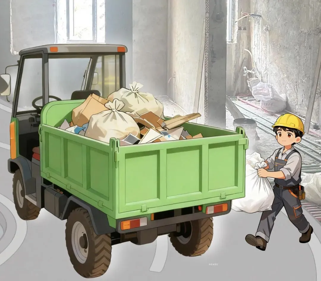 改造完成后,我们有一套标准化垃圾清运动作,做好收尾工作。