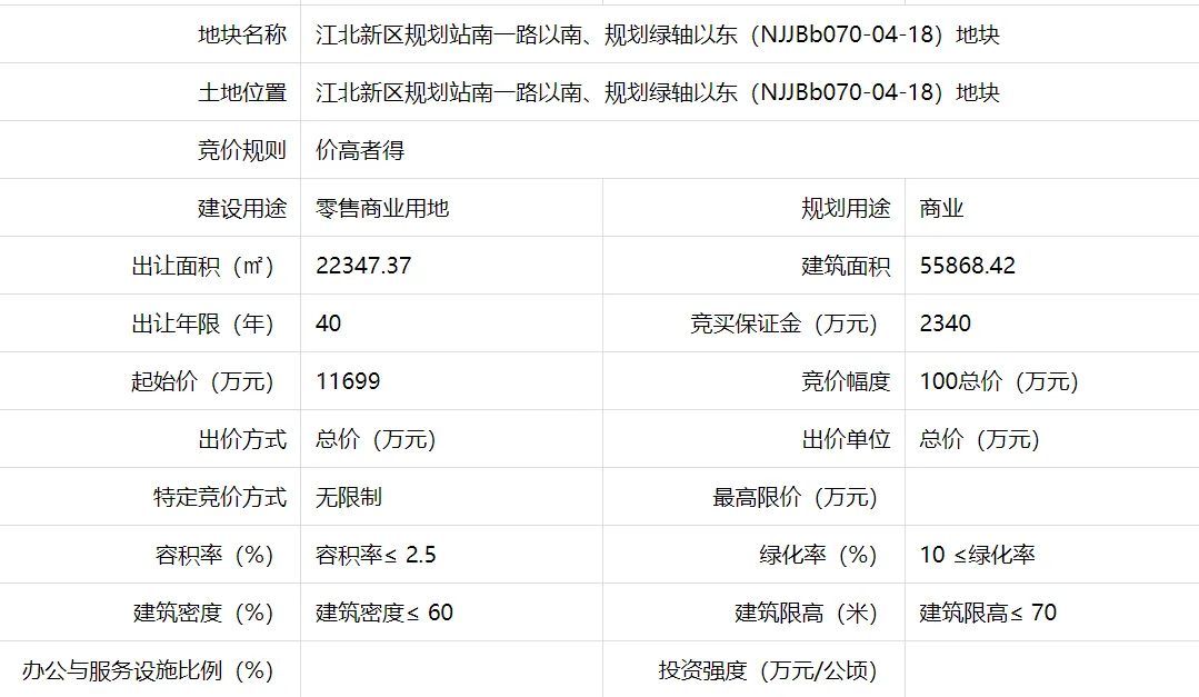 该地块为零售商业用地,起始总价为11699,容积率≤2.5。
