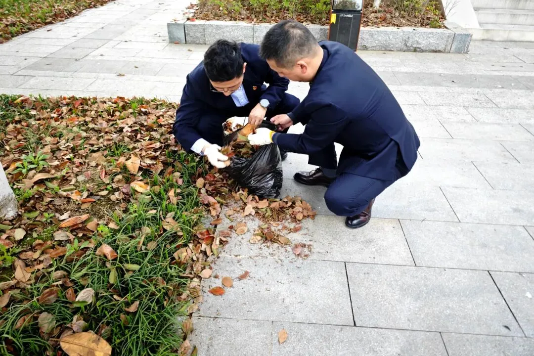 祭扫结束后,全体人员争当志愿者,在纪念碑亭、英雄长廊、太平文化园等区域开展环境卫生清洁志愿服务,擦拭纪念碑、清扫落叶、捡拾垃圾,以实际行动守护英雄纪念场所,传承红色基因、践行奉献精神。