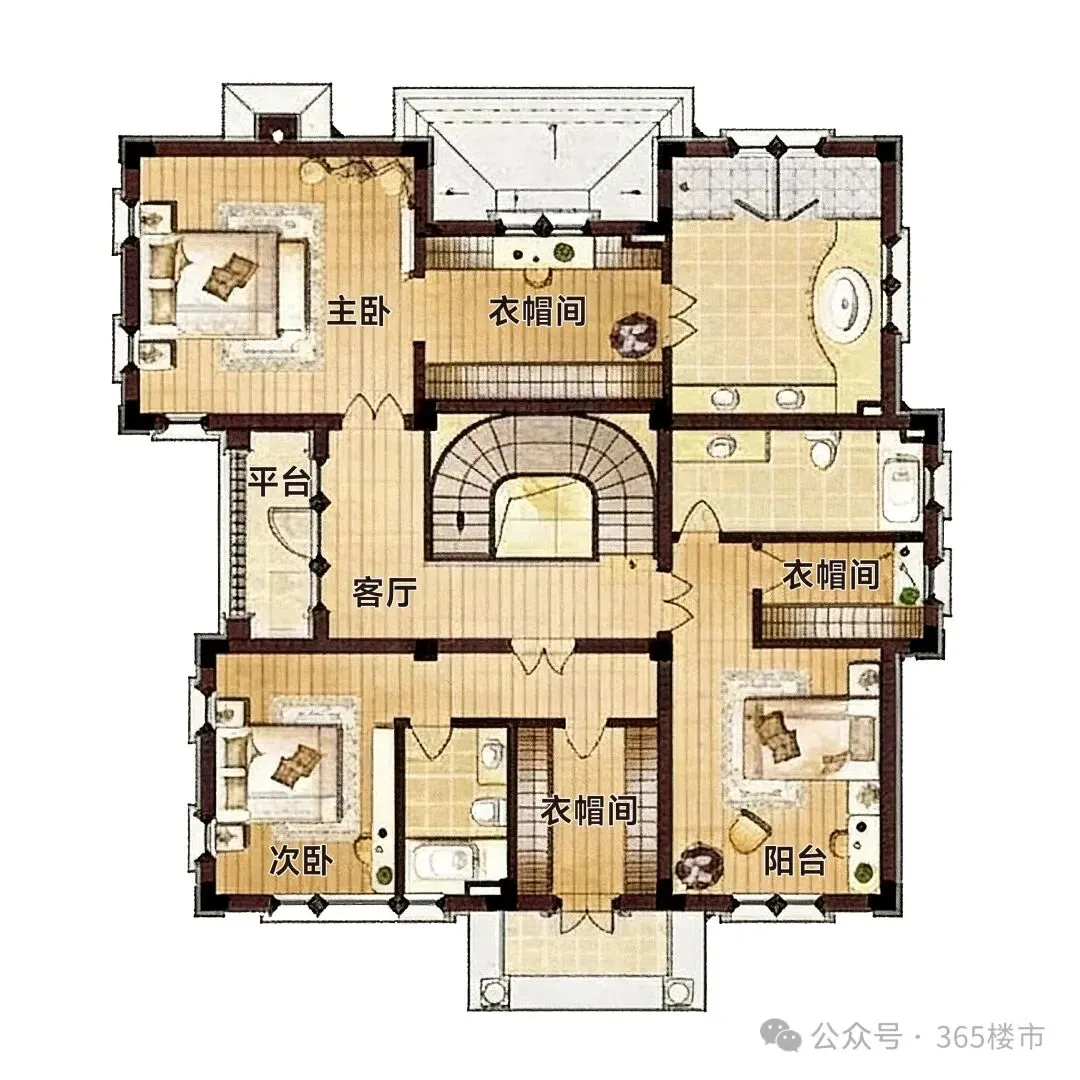 二层主要为起居空间 + 户外阳台,层高优势明显。