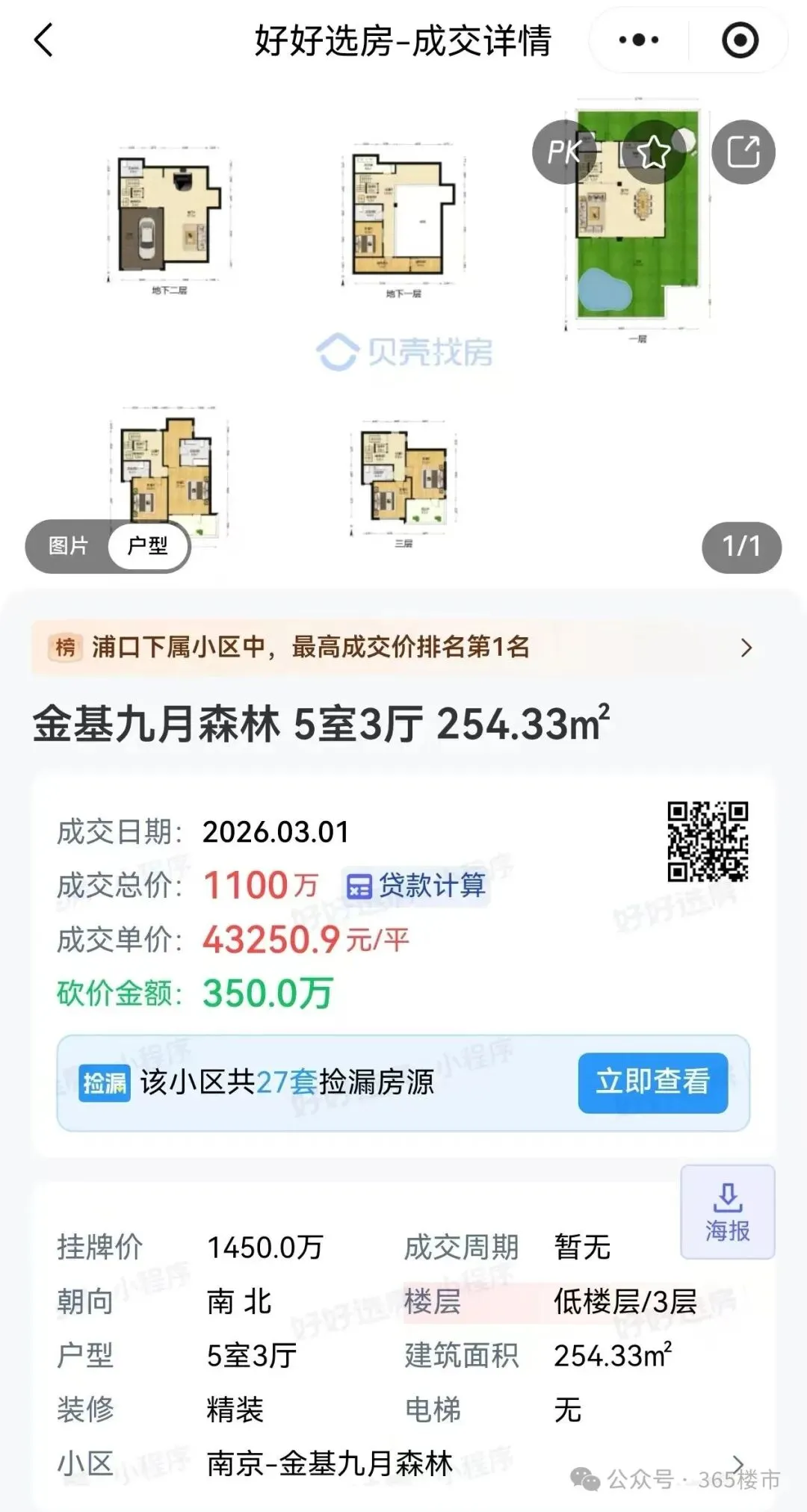 这套房子,是金基九月森林的独栋别墅,建筑面积约635平方米,报价2222万元,单价约3.5万/平,比这个月九月森林新成交的双拼还要低8000元/平!
