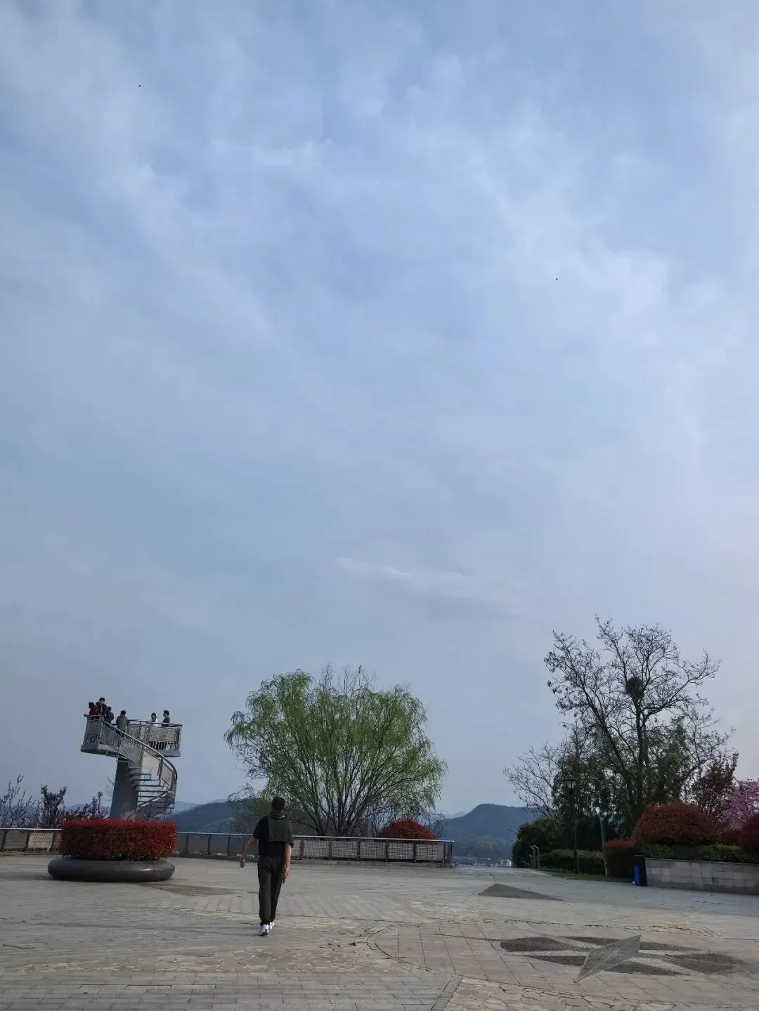 山顶设有观景台,登顶可极目远眺,将山水风光尽收眼底,视野开阔。