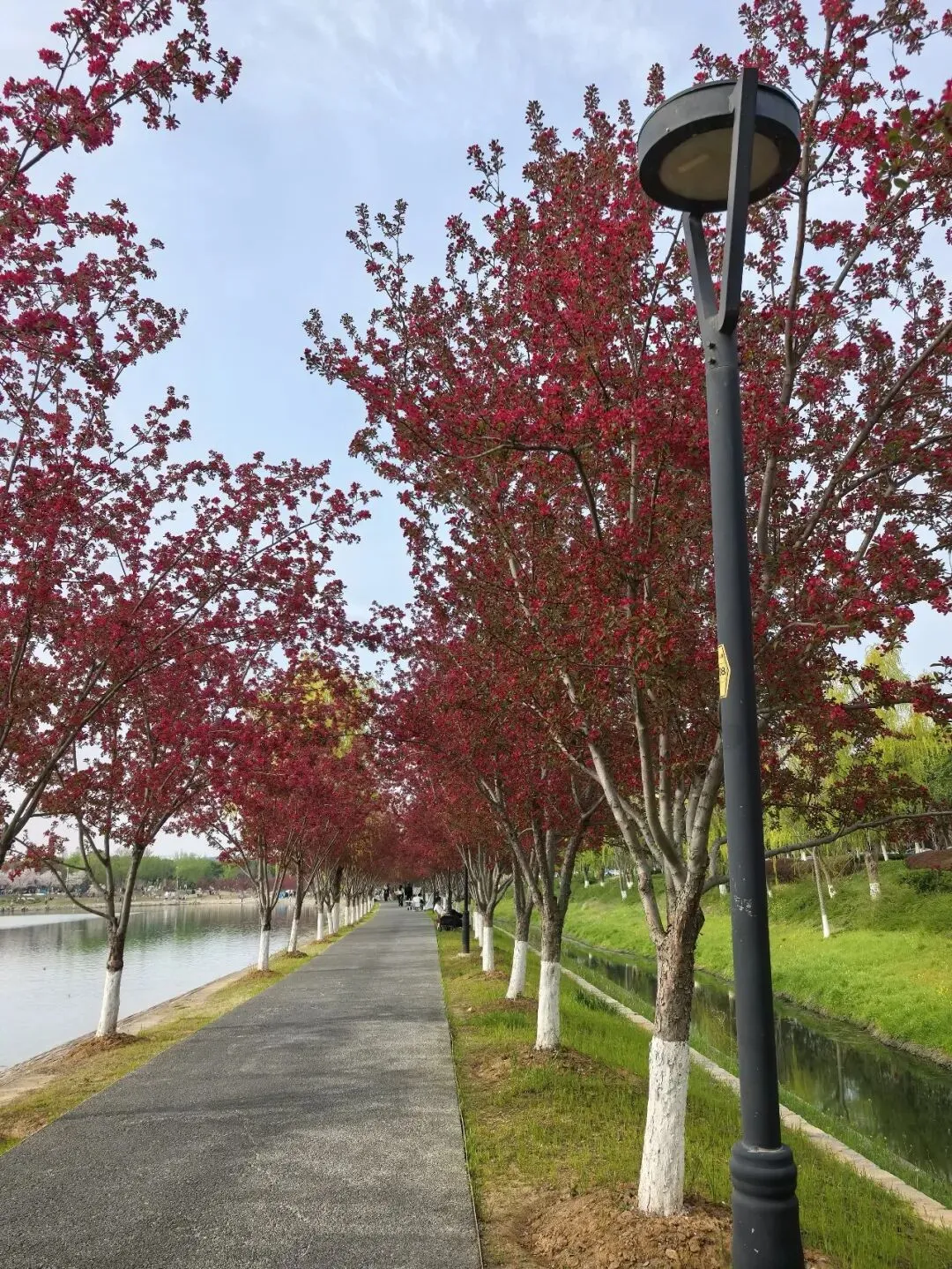 “一堤”即海棠堤,在羊山湖东内堤岸采用北美海棠等植物,构建出具有视觉震撼效果的“海棠春晓”景观。