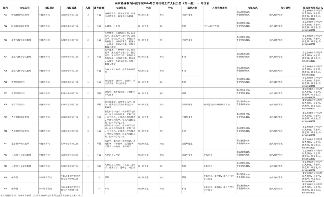 附件:南京特殊教育师范学院2026年公开招聘工作人员公告第一批-岗位表.xlsx