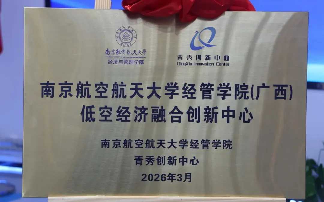 2026年3月31日上午,南京航空航天大学经济与管理学院重磅落地合作项目——南京航空航天大学经管学院(广西)低空经济融合创新中心,在青秀创新中心科技聚变场正式揭牌成立,标志着我院对外产学研合作、布局西南低空产业版图迈出关键一步。