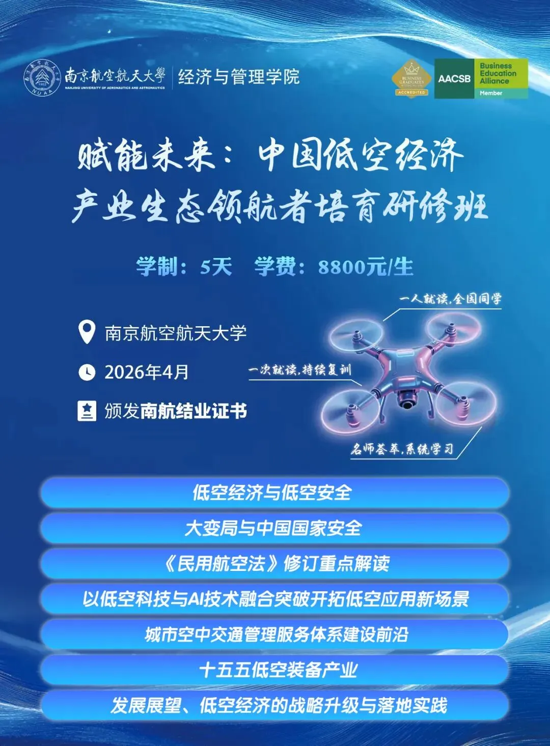 EE高管教育中心长期专注于面向企业界和政府的高端管理培训,积累了丰富的教学资源与行业实践经验。目前,《赋能未来:中国低空经济产业生态领航者培育研修班》正在招生。
