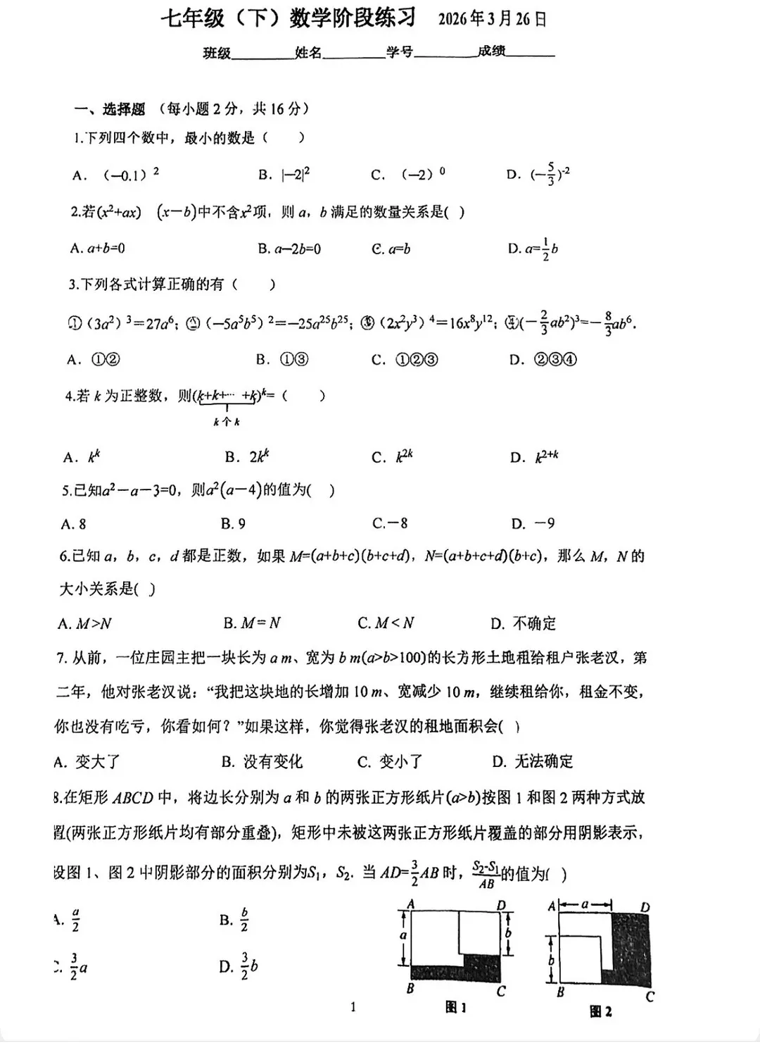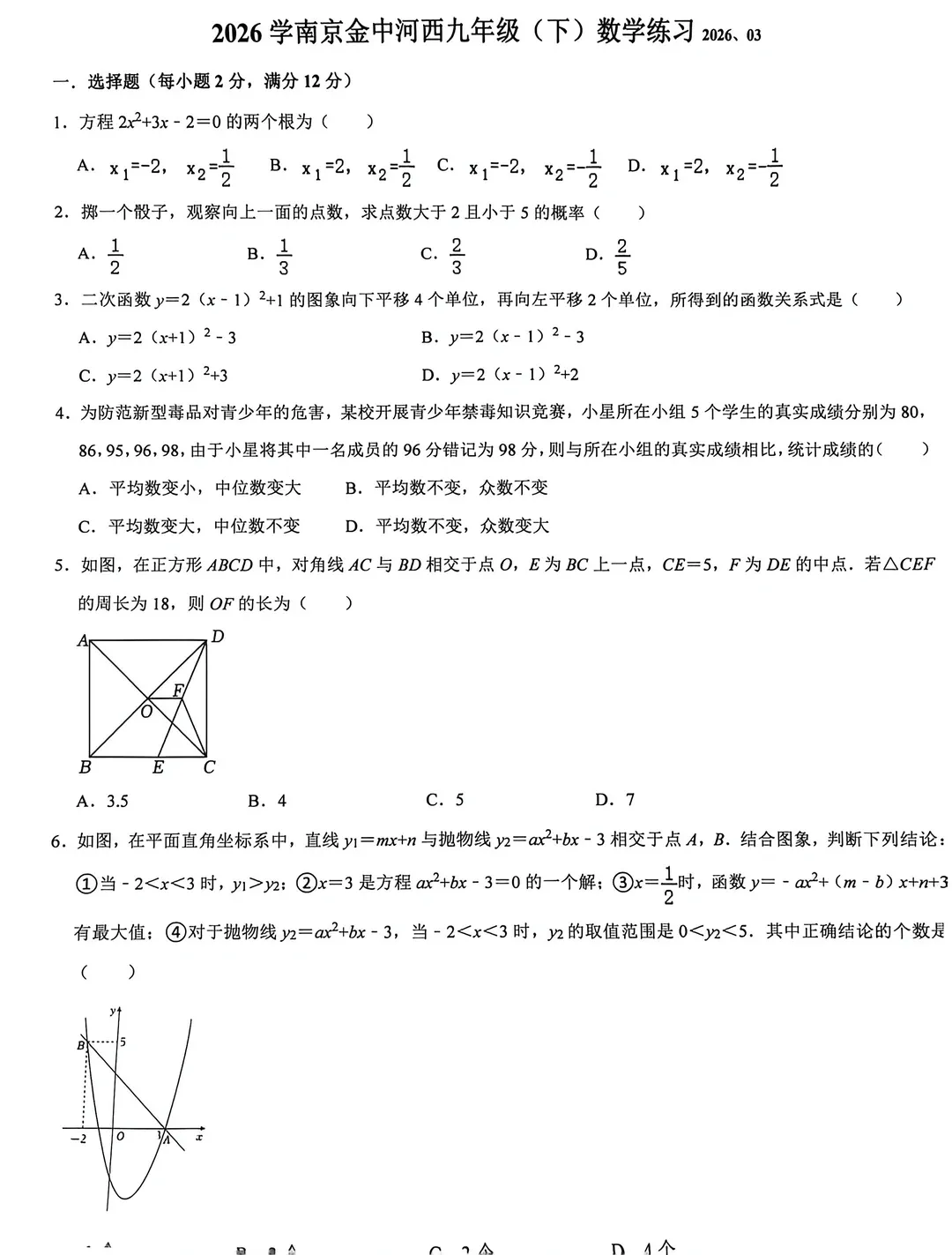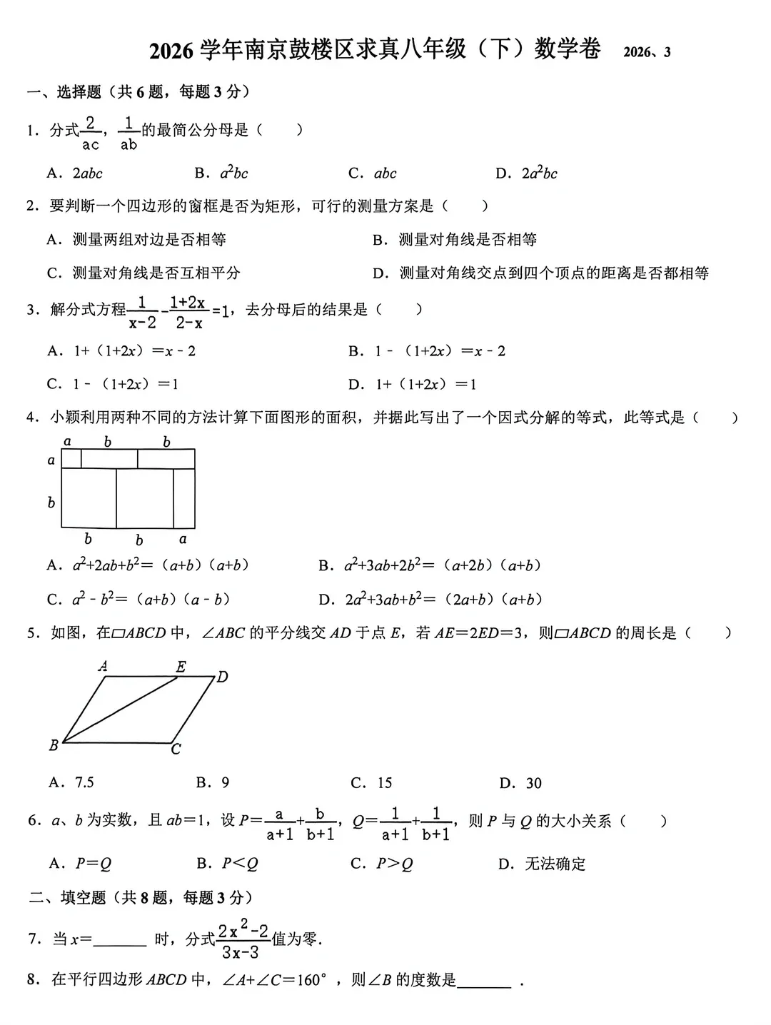 新鲜出炉!南京市2025-2026七八九年级下第一次月考真题卷