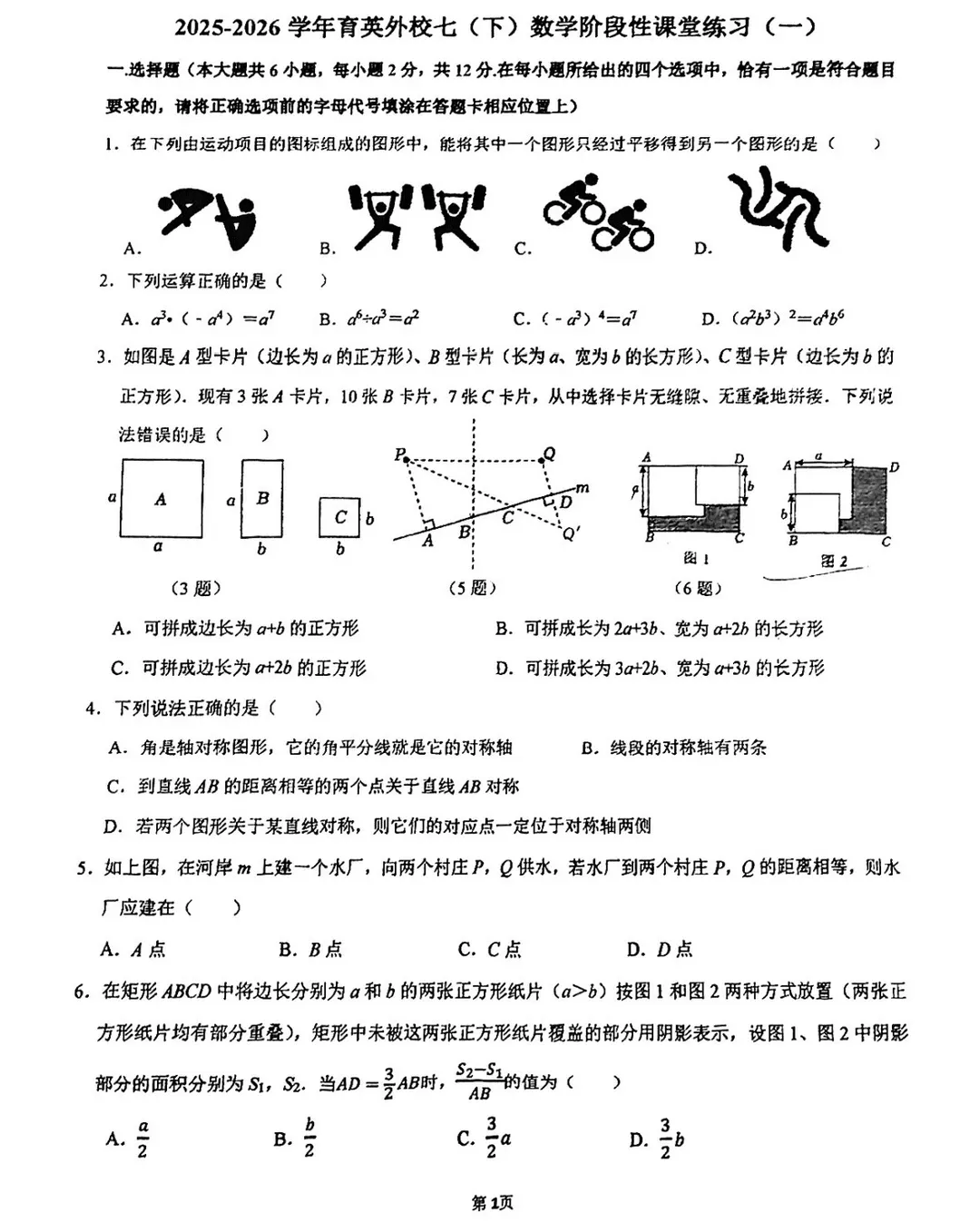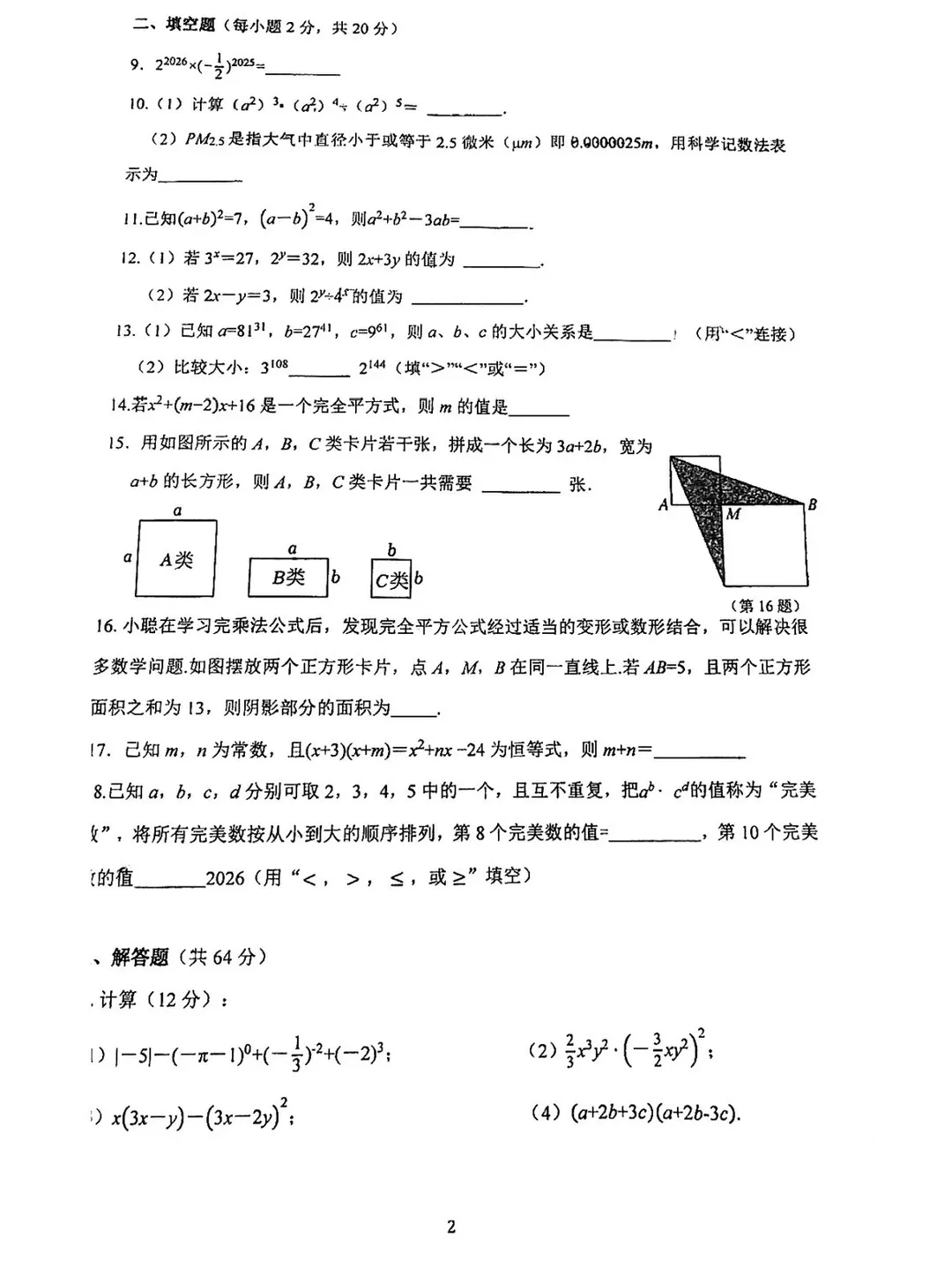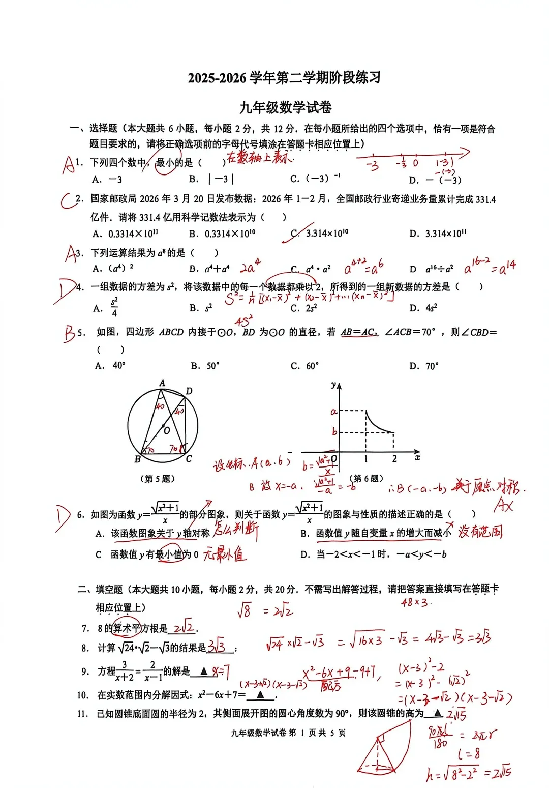 新鲜出炉!南京市2025-2026七八九年级下第一次月考真题卷