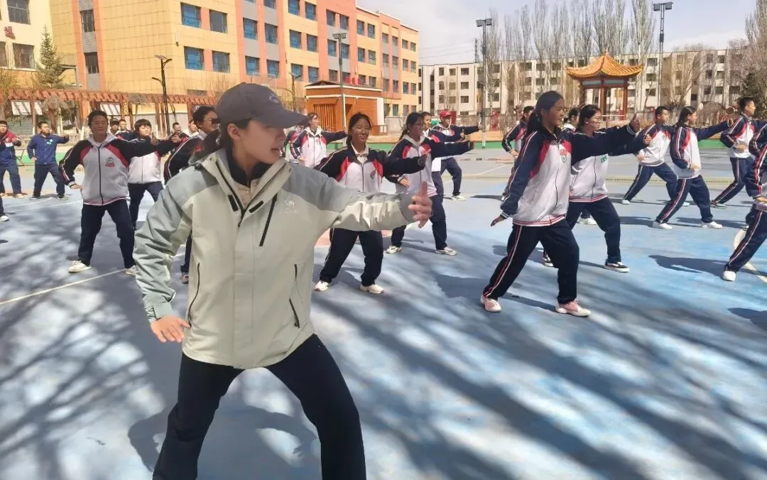 从江南操场到高原赛场,我以体育为桥,踏上了这片辽阔的土地。支教以来,我承担全校体育课教学,组织跑操、广播操、趣味运动会,也带着热爱运动的孩子开展专项训练。高原空气稀薄、气候多变,每一次奔跑、跳跃、投掷都格外不易,但孩子们从不叫苦,眼神里满是不服输的韧劲。