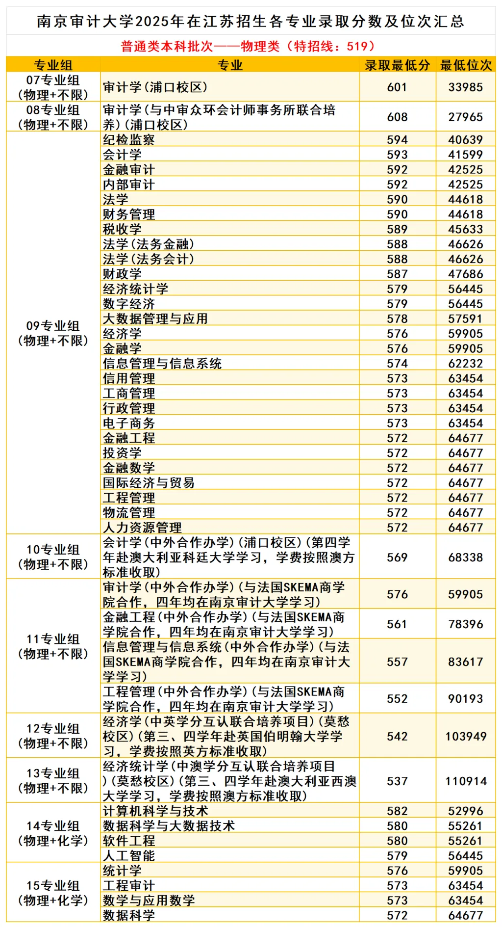 物理类最高608分!南京审计大学2025年江苏省各专业录取分出炉