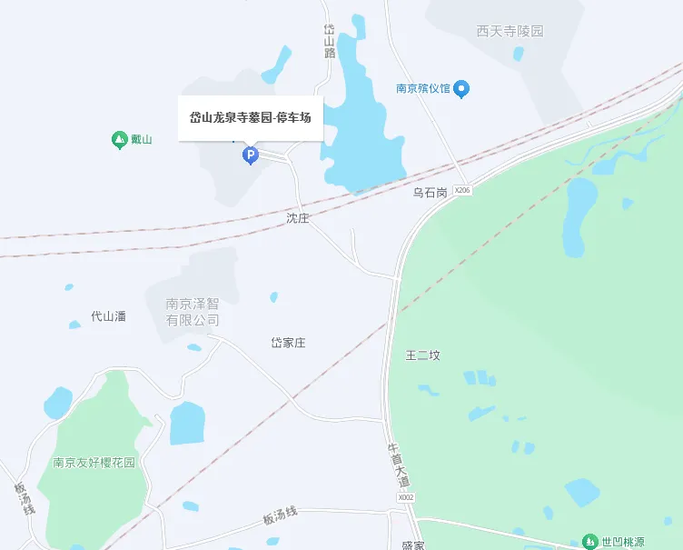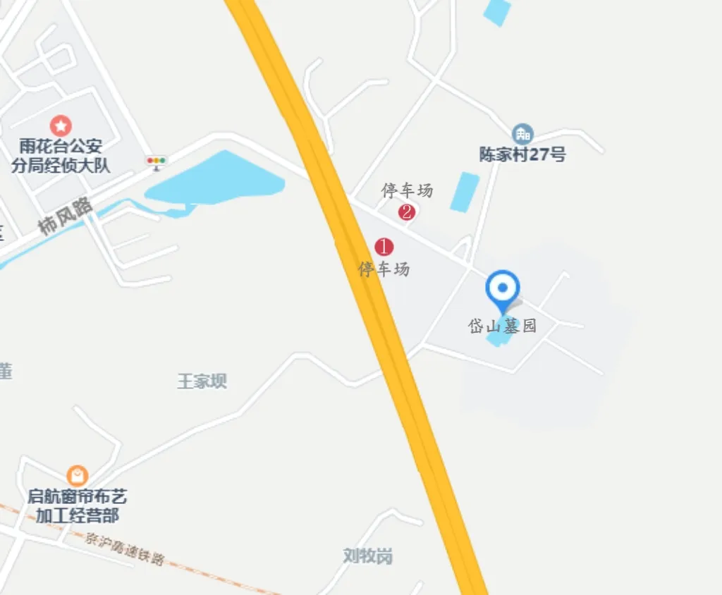 导航龙王山墓园(东门),车辆可停放在墓园内部停车场及墓园南侧停车场。
