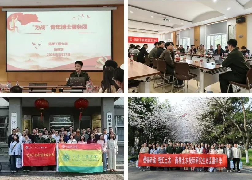 春有樱花缀研途,心有家国赴新程。为搭建校际学术交流平台,增进高校间学科互动与友谊,近日,南京林业大学土木工程学院成功举办“樱缀沿途·智慧土木”校际研究生交流嘉年华活动。本次活动由南京林业大学土木工程学院主办,陆军工程大学应邀参与,两校研究生代表齐聚南林,共话学术成长,共赏樱园盛景,共促合作发展。